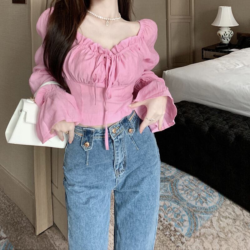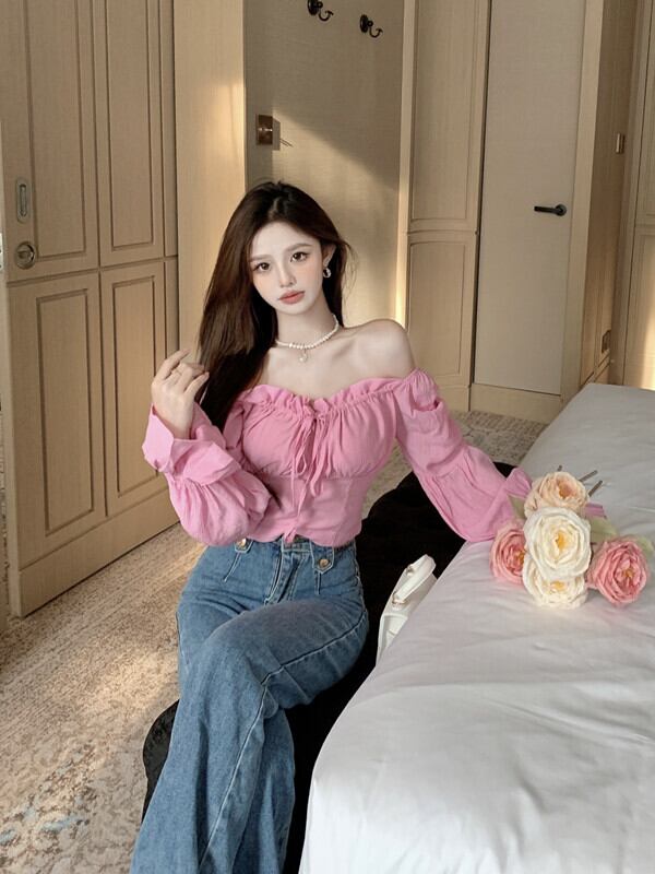 センスニッチシャツ 2023春新作 甘辛ワンショルダー ショートパフスリーブシャツ トップス レディース 大人ガーリー スウィート キュート カジュアル スプリング 春物 nana54174050604 | modepoisson