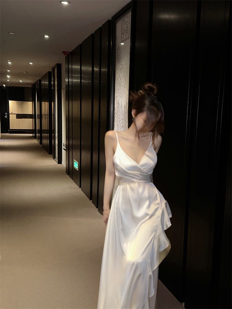 フランスの純粋な欲望のセクシーなサスペンダー ヘップバーン スタイル レディース ハイエンド センス スカート夏サテン イレギュラー ドレス婦人服 サマー 夏物 ピュア nana93245785335 | modepoisson