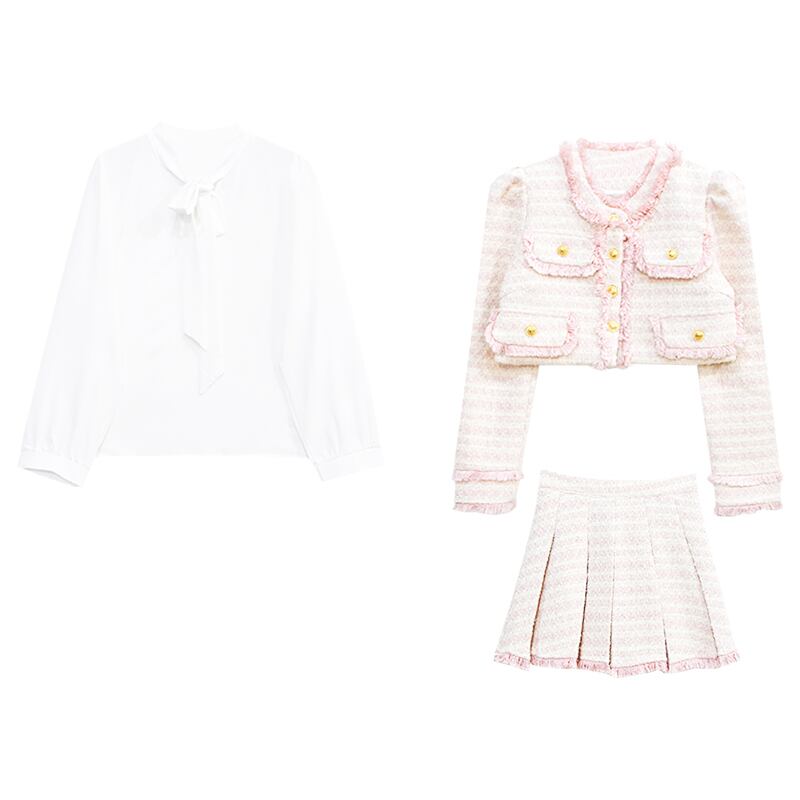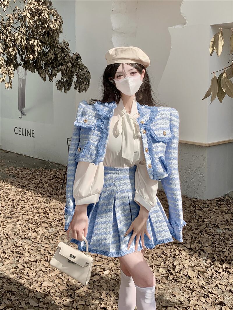 -end 小さなフレグランス スーツ 2022 秋冬の新しいファッション気質有名人ショート コート プリーツ スカート 2 点セット女性 オータム 秋物 ウィンター 冬物 nana58237542394 | modepoisson