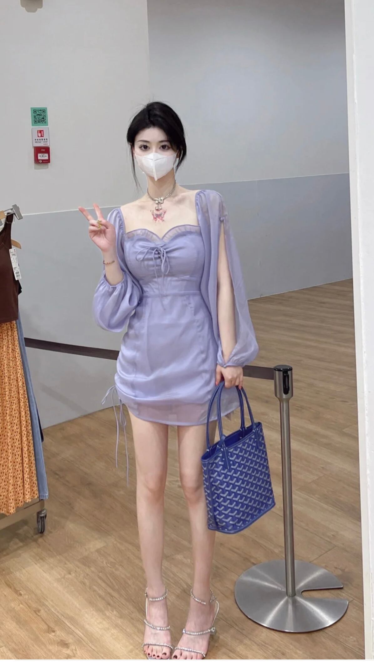 2023 春の新フレンチスタイル優しいスタイルレディーススリムウエストスリムスクエアカラー長袖スリムドレス女性 ロング スプリング 春物 スクウェア nana81166756633 | modepoisson