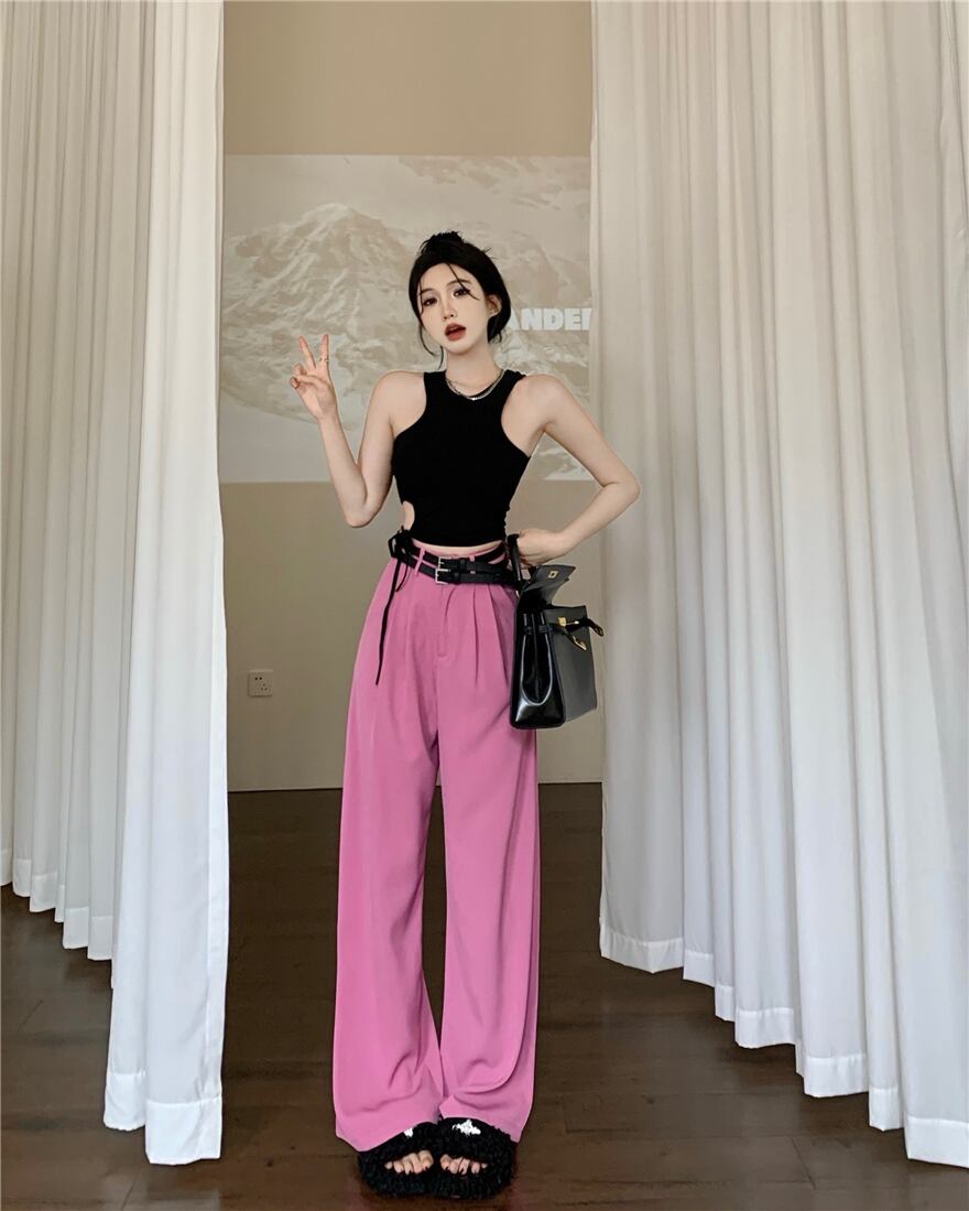 インターネット有名人 2023 フライドストリートスーツ女性の夏の新ファッションバージョン気質ベストハイウエストワイドレッグパンツツーピースセット ハイウェスト サマー 夏物 ワイドパンツ nana33675045297 | modepoisson