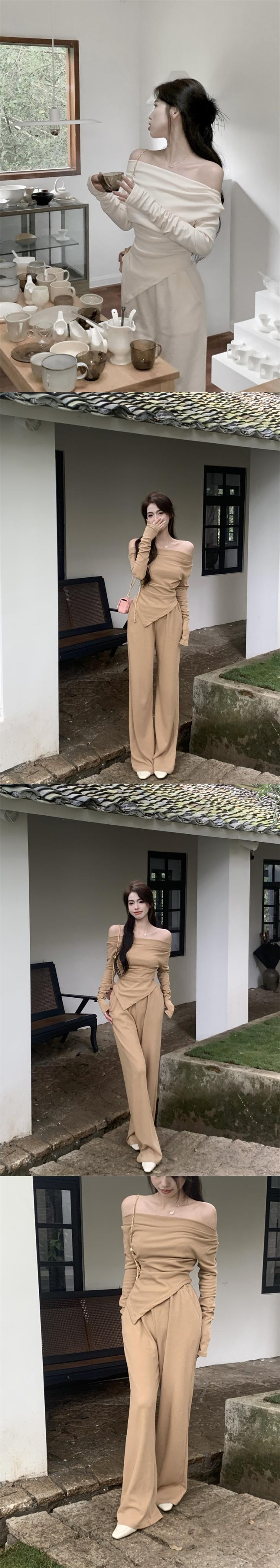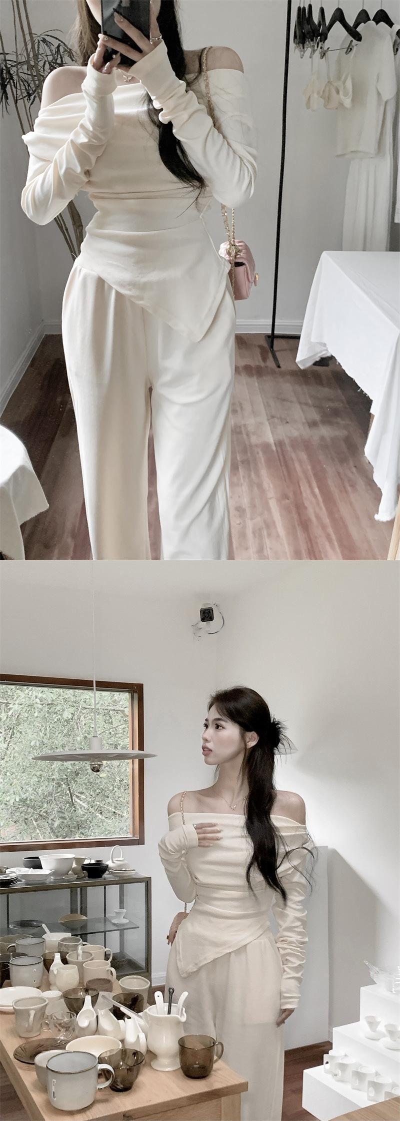 甘いスーツ女性ファッション純粋な欲望ワンショルダー tシャツ ストラップレス トップ ワイド パンツ春カジュアル 2 点セット 大人ガーリー スウィート キュート スプリング 春物 ピュア nana76649558953 | modepoisson