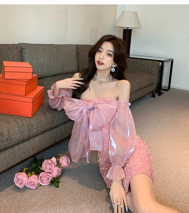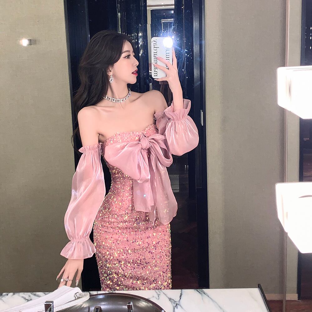 2023 夏セクシーなストラップレスストラップボウノットスリムフィットパッケージヒップドレスフレンチドレス女性のドレス リボン サマー 夏物 nana79152908195 | modepoisson