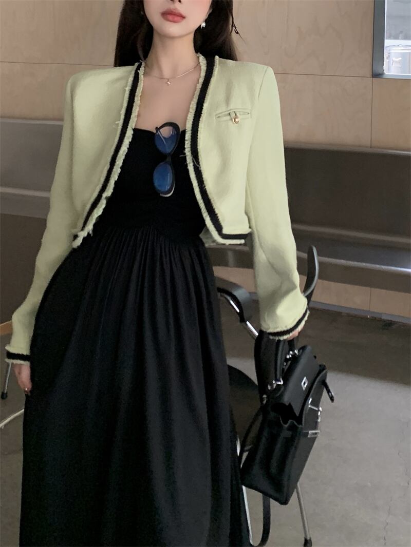 2023 春の新スタイルフレンチスタイル小さなフレグランスジャケットチューブトップサスペンダードレスハイエンドセンスツーピーススーツスカート婦人服 スプリング 春物 nana5687242280 | modepoisson