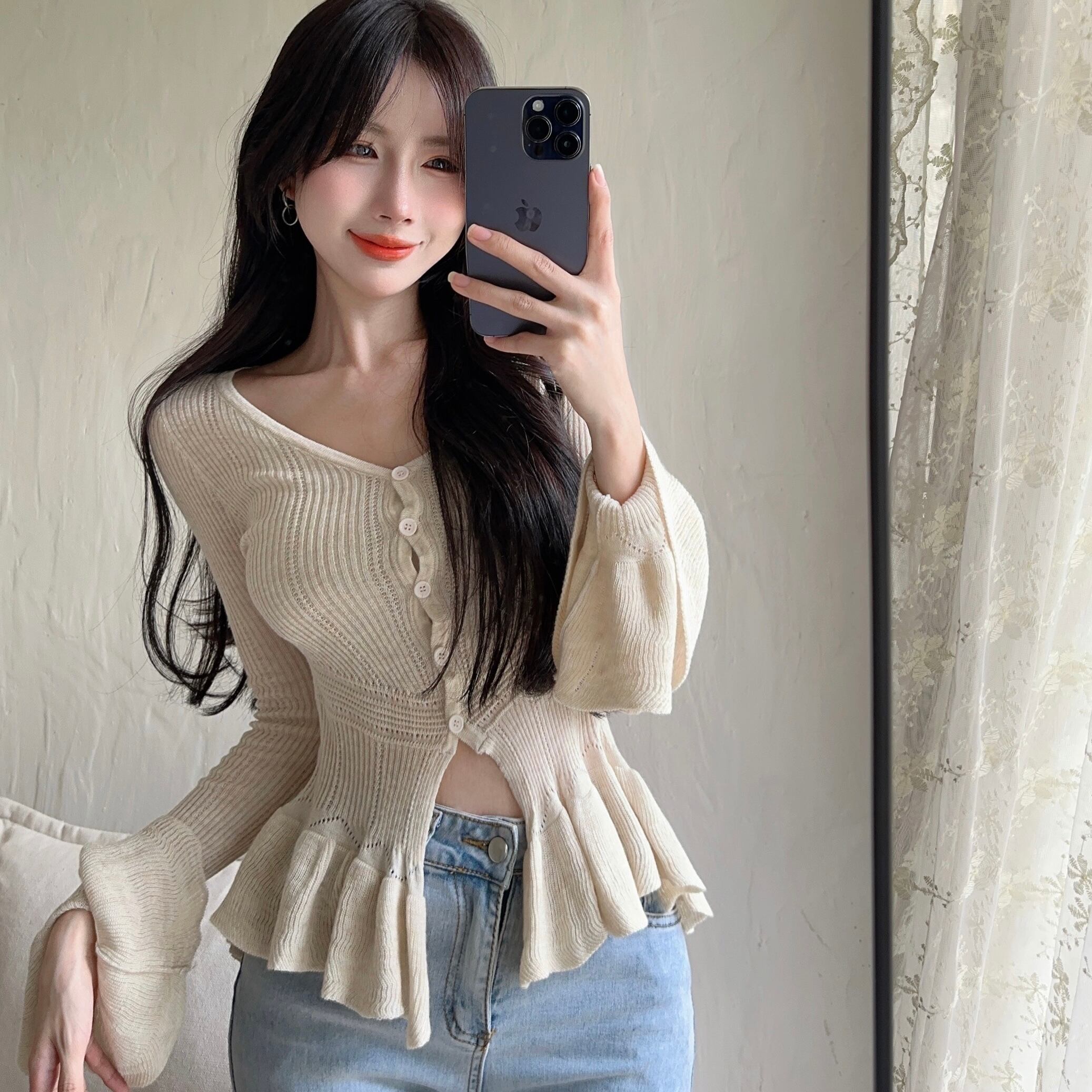 ニット カーディガン 2023年春 新作 スリムフィット 薄いベースレイヤー Vネック シック シック トップ レディース スプリング 春物 nana72907339694 | modepoisson