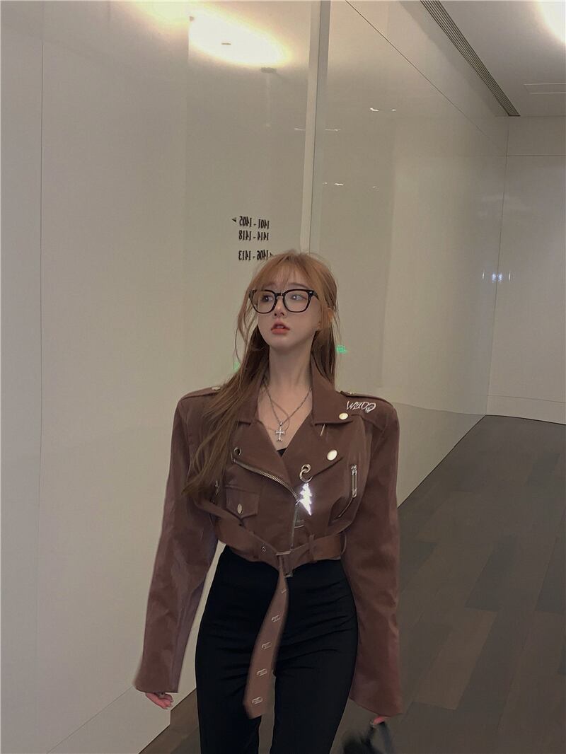 レザー モーターサイクル ジャケット コート レディース 2023年春 新作 小さめ デザイン センス ニッチ気質 ショートトップ スプリング 春物 nana98136009573 | modepoisson