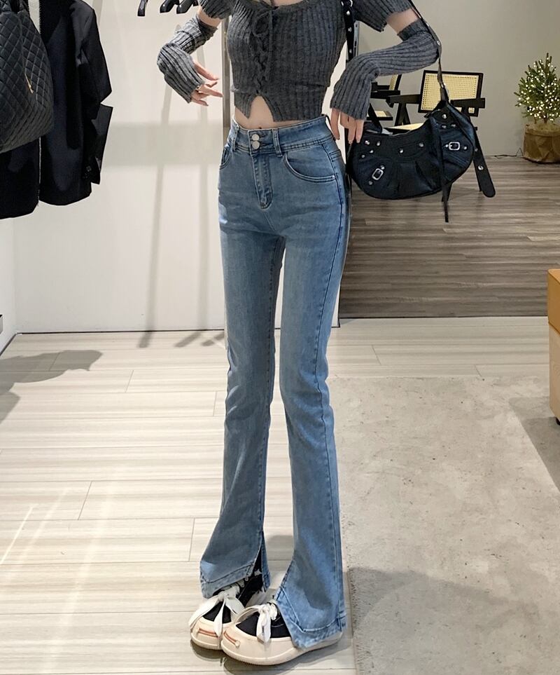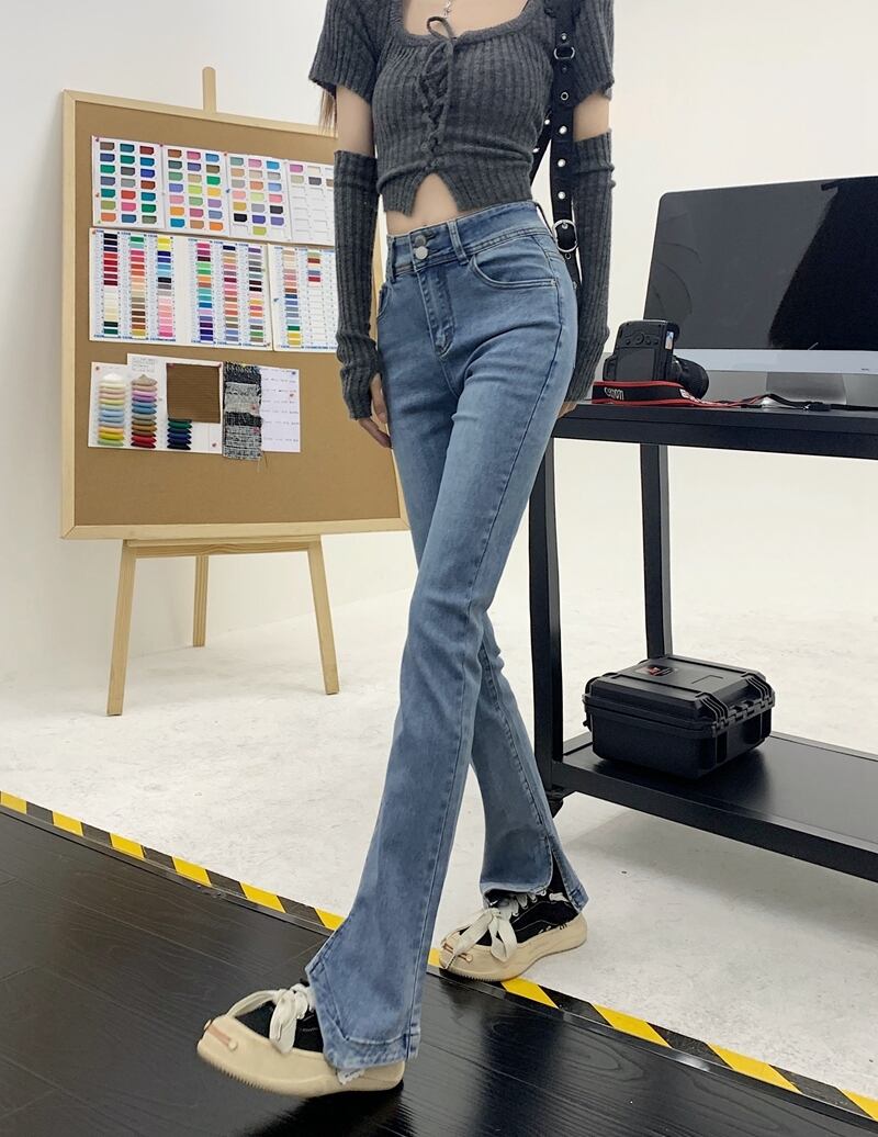 - ウエストジーンズ 婦人服 2023 春の新作 ルーズストレートレッグドレープ 伸縮性わずかにフレアパンツ スリットモップパンツ レッド エラスティック スプリング 春物 nana38997307846 | modepoisson