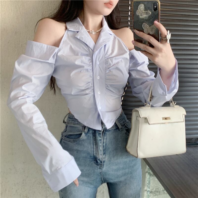 フレンチデザインセンス ニッチシック レトロ ハイエンド スウィート スタイル オフショルダー 長袖 ショートシャツ トップス レディース ロング 大人ガーリー キュート カジュアル nana74948951278 | modepoisson