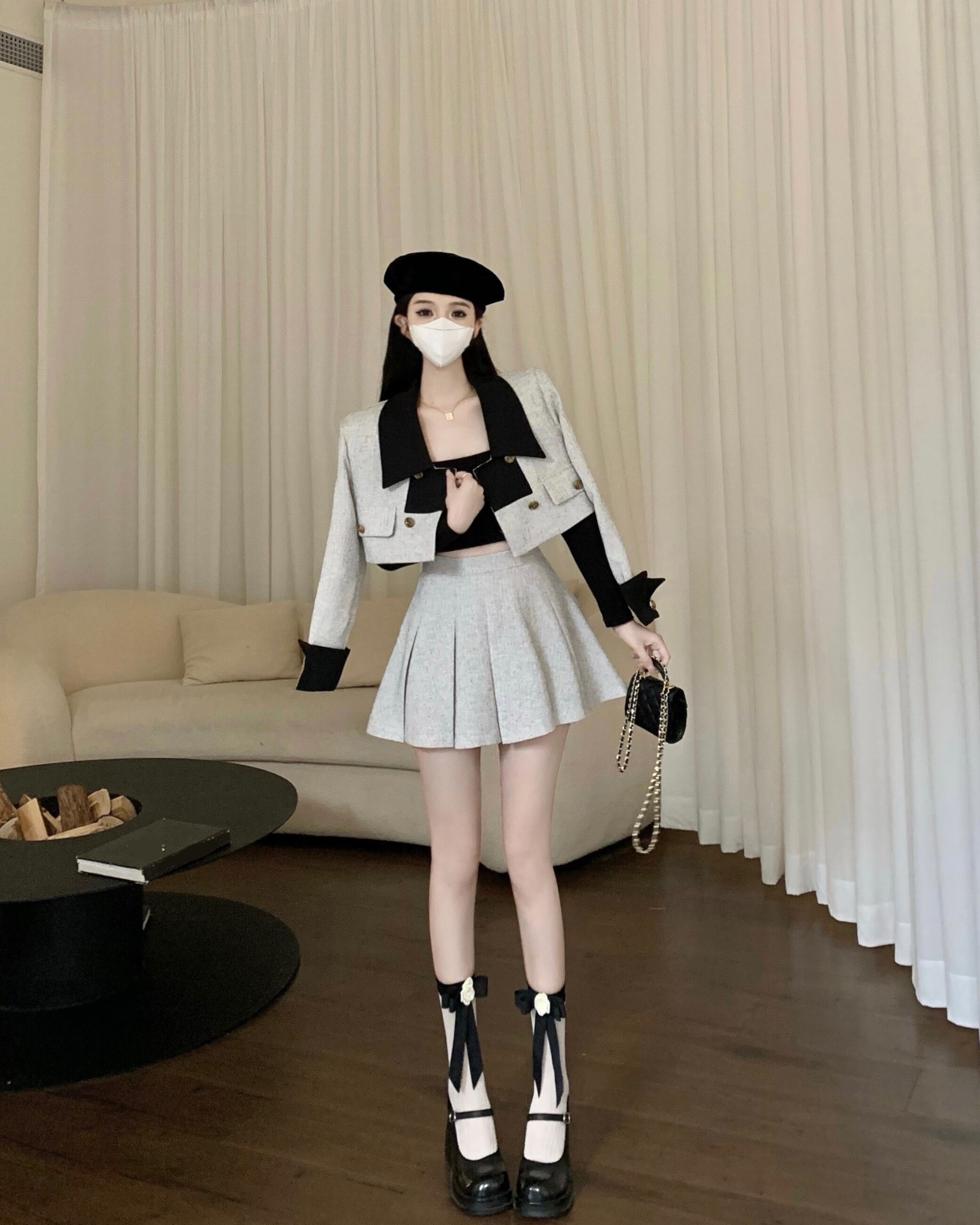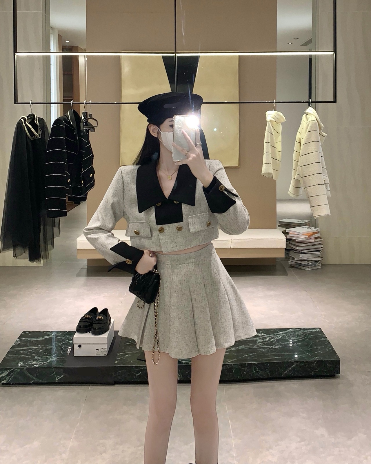 フランスのファッション有名人のスーツの女性の春と秋の 2023 新しい小さなフレグランス風ショート コート スカート気質 2 点セット スプリング 春物 オータム 秋物 nana93628203803 | modepoisson
