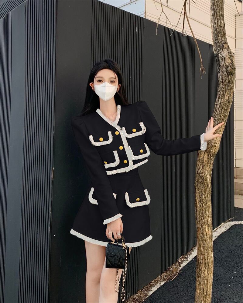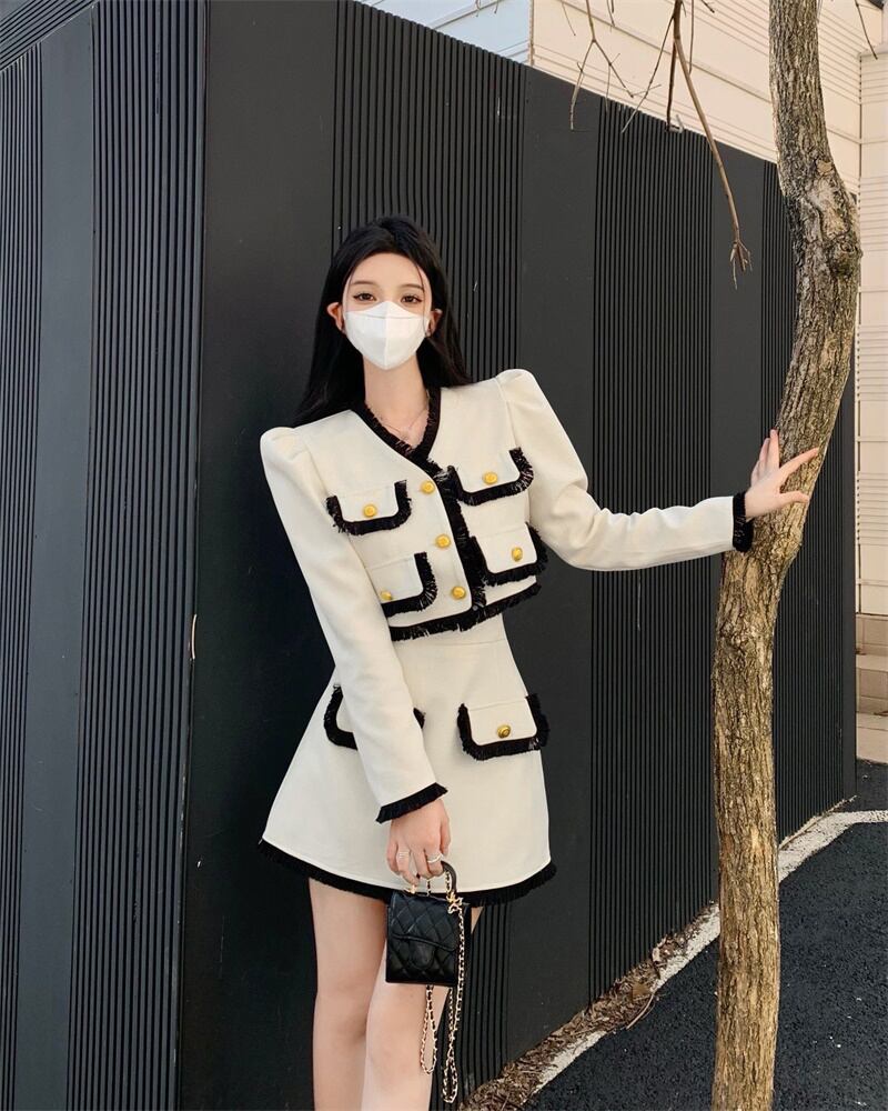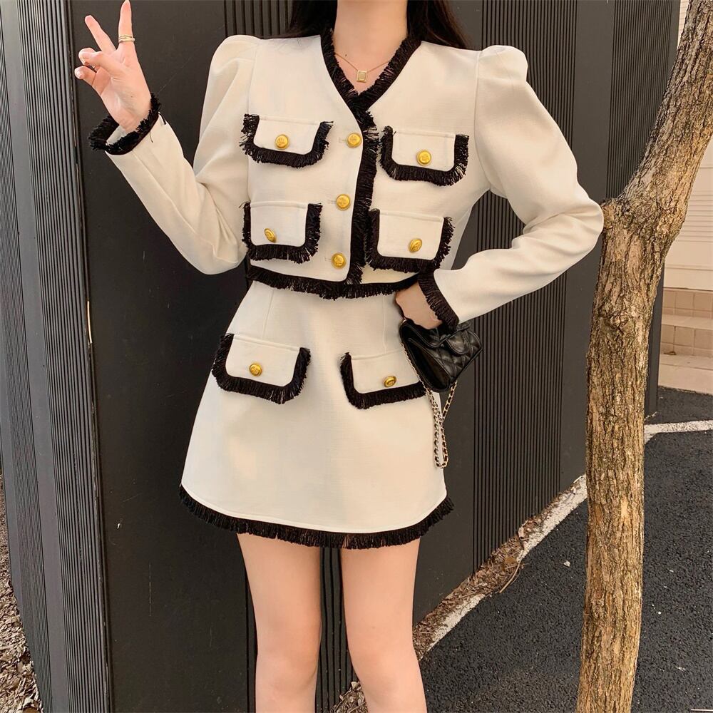 小さな香りのする風スーツ 2023 春の新しいファッション有名人の気質のコート半分の長さの短いスカートのツーピースの婦人服 ショート スプリング 春物 nana65824215247 | modepoisson