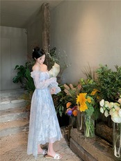 ティーブレイクフレンチフローラルドレス2023春の新作夏ウエストパフスリーブ気質ミドル丈スカート婦人服 スプリング 春物 サマー 夏物 花柄 nana78754166343 | modepoisson