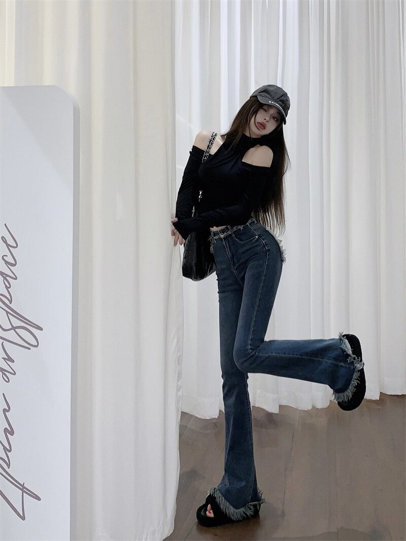 フレンチ フレア ジーンズ春 2023 新しいファッション バージョン ハイ ウエスト ワイド脚ストレート スリム パンツ女性 ハイウェスト レッド スプリング 春物 ワイドレッグ ワイドパンツ nana58194502442 | modepoisson