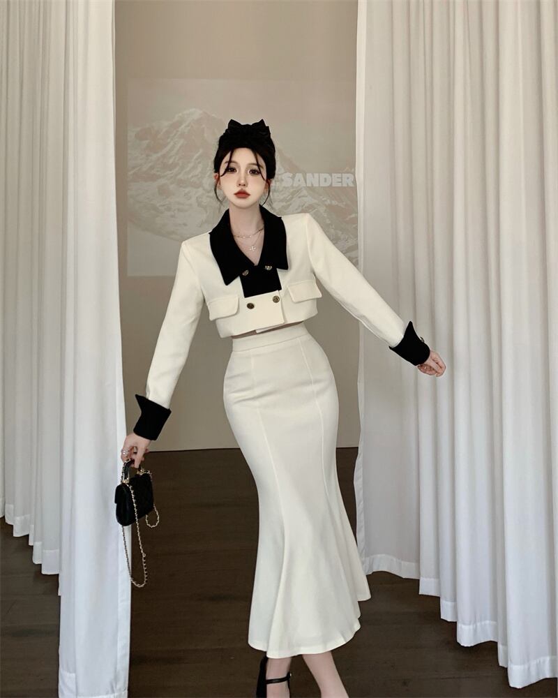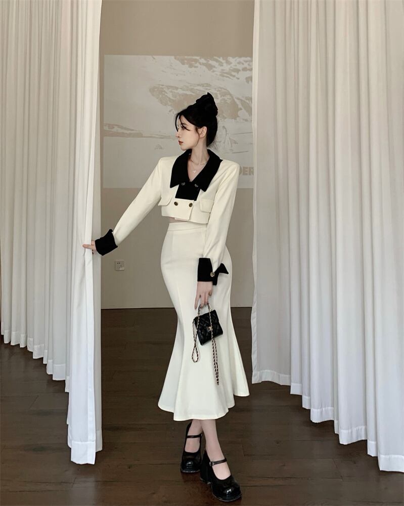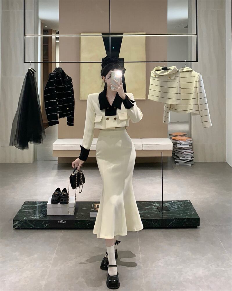 スモールフレグランススーツレディース春新作フレンチレディースショートコートハイウエストバッグヒップマーメイドスカート2点セット ハイウェスト スプリング 春物 nana59673401247 | modepoisson