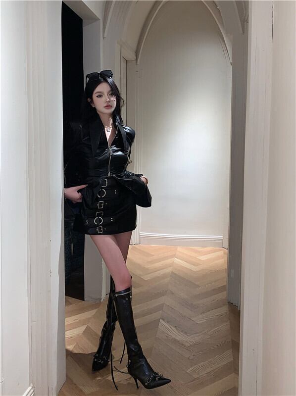 スーツ女性の 2023 春の新ウエストウエストスリム純粋な欲望セクシーなレザーシャツトップスカートツーピーススーツ スプリング 春物 ピュア nana83939994886 | modepoisson