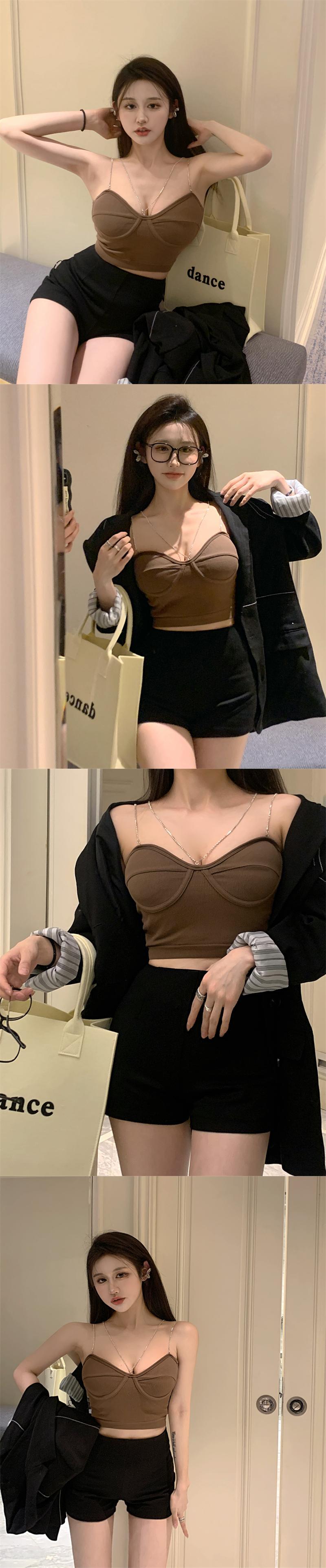 キャミソール女性の夏のフランスの甘くてスパイシーなスタイルのセクシーな自己修養痩身ショートニッチ底入れシャツインナートップ 大人ガーリー スウィート キュート カジュアル サマー 夏物 nana92785679877 | modepoisson
