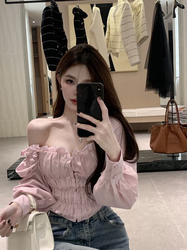 ワンショルダー パフスリーブ トップス 春 新作 フレンチレトロ デザインセンス ニッチ スクエアカラー 長袖 ショートシャツ レディース ロング スプリング 春物 スクウェア nana49560526344 | modepoisson
