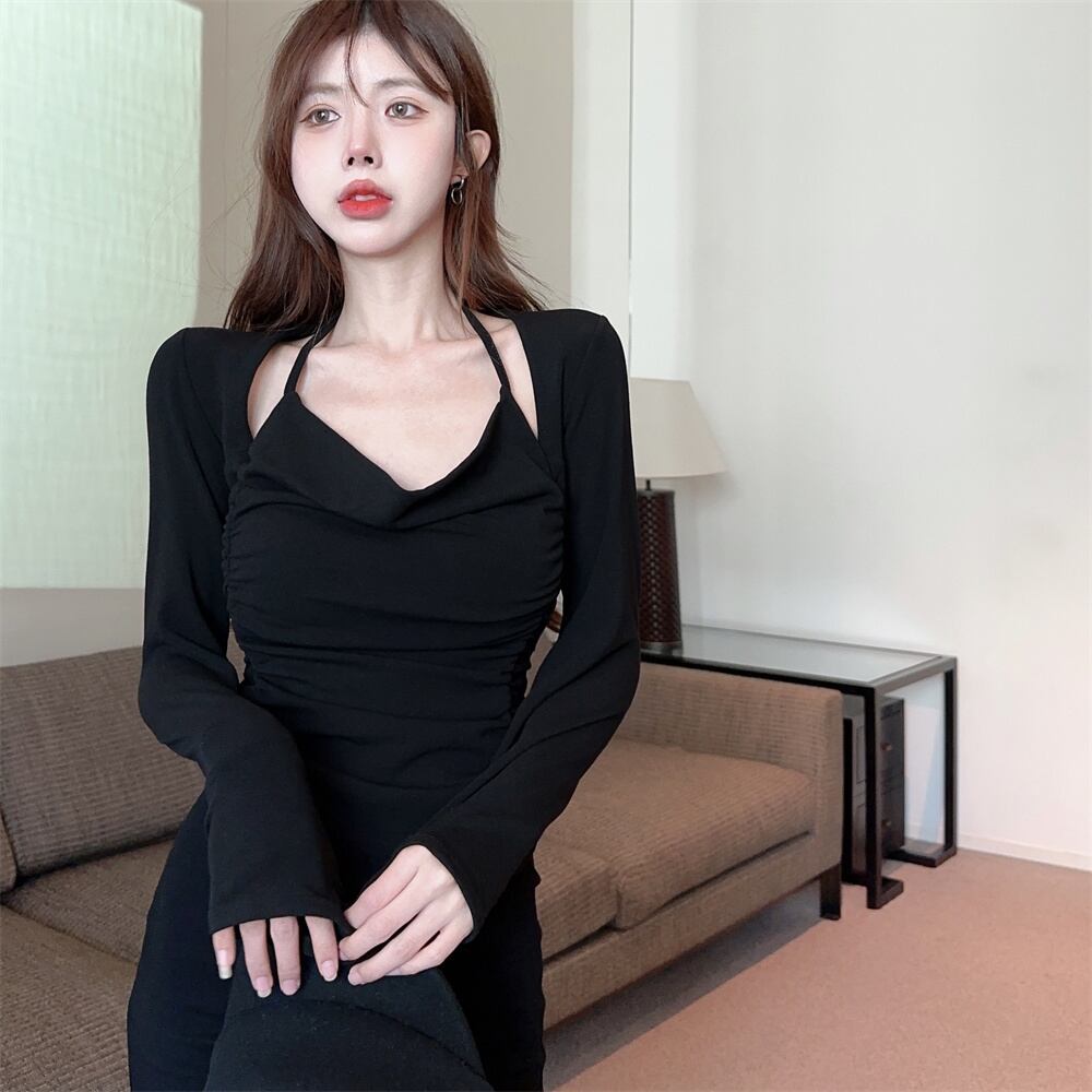 センスニッチ tシャツ女性の 2023 春の新ボトムシャツフェイクツーピーススリム長袖吊りネックサスペンダートップ ロング スプリング 春物 nana57599774488 | modepoisson