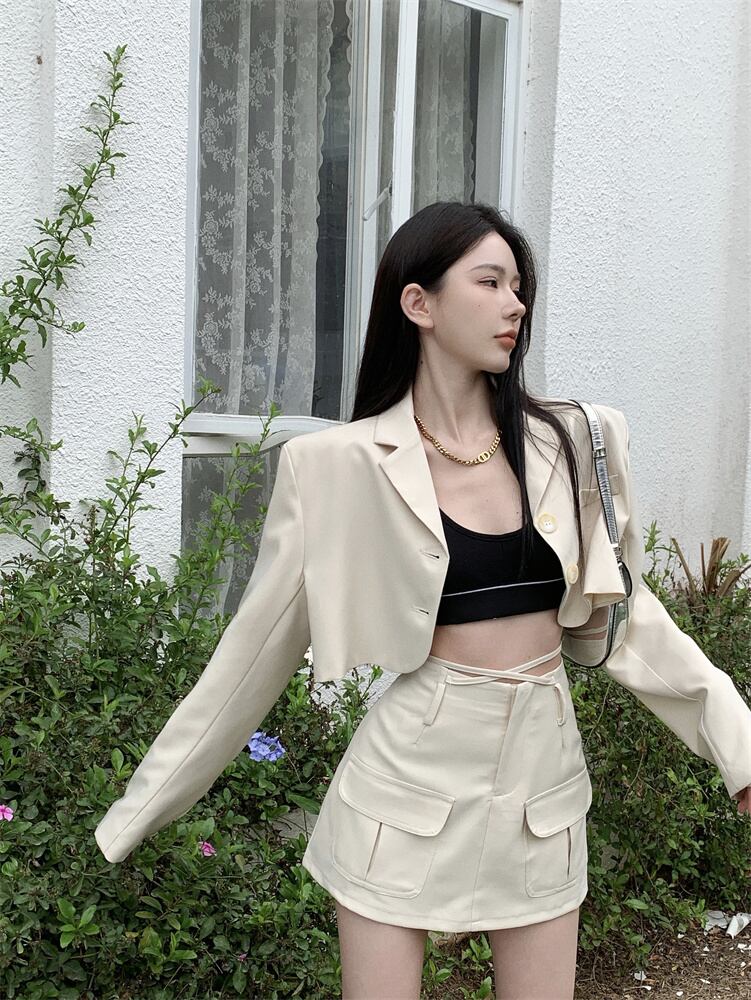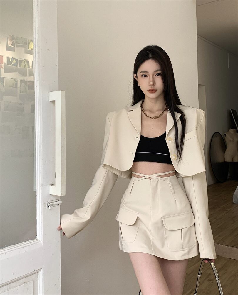 エンドスーツ スーツ 女性 2023年 春 新作ファッション ショートコート ハイウエスト スカート 2点セット ハイウェスト スプリング 春物 nana74268687997 | modepoisson