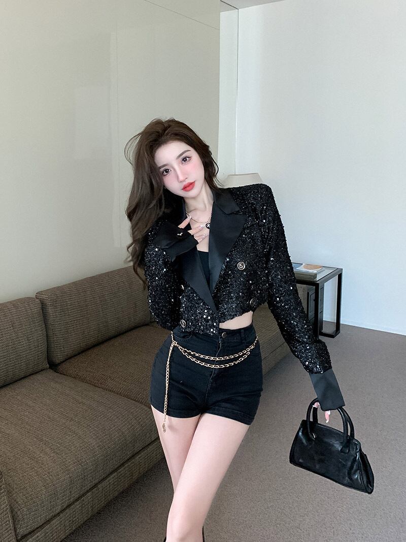 黒のスーツ ショート ジャケット婦人服 2023 初春の新しいデザイン センス ニッチな気質のカーディガン スーツ ジャケット ブラック スプリング 春物 nana71386217712 | modepoisson