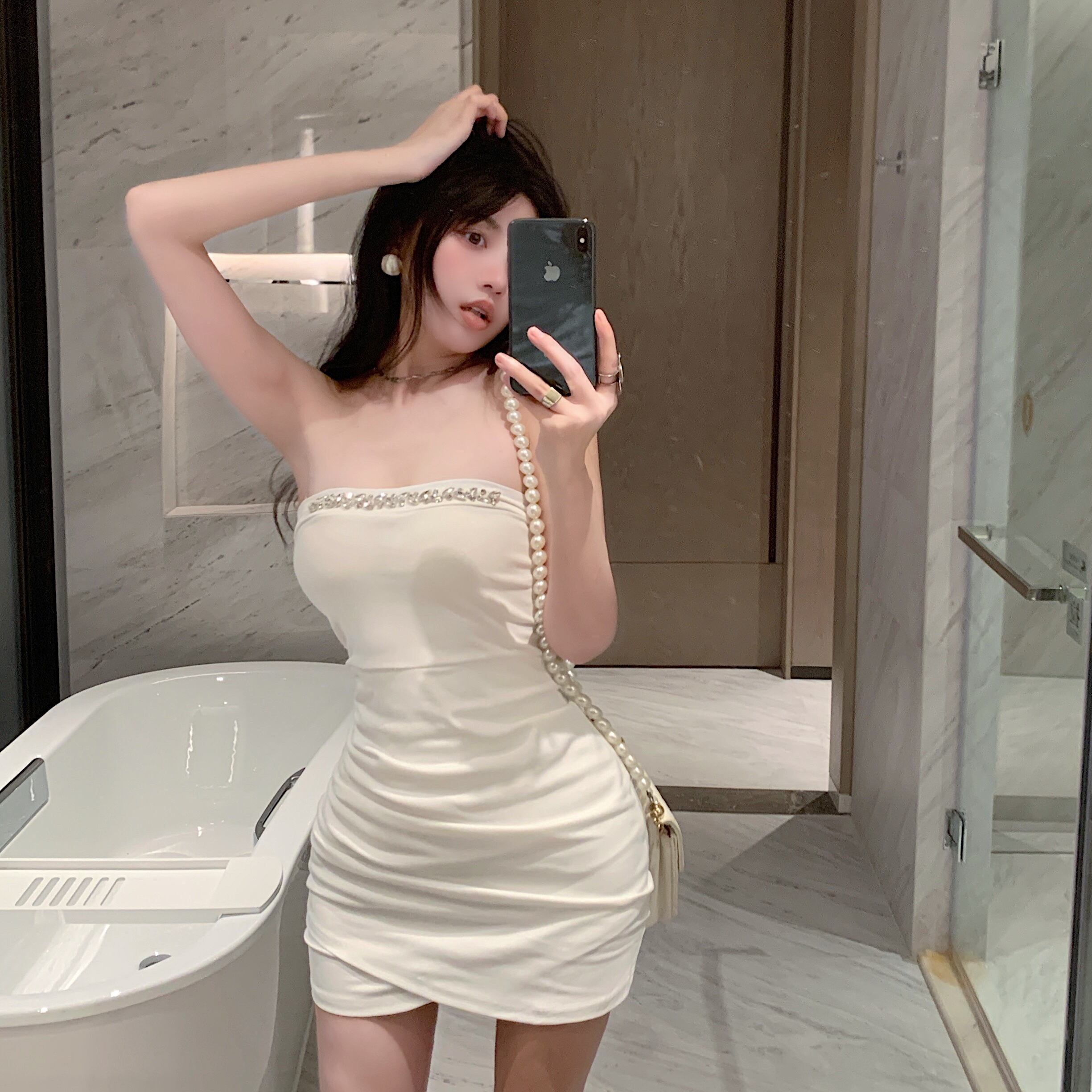 重工業 セクシー ワンショルダー ノースリーブ チューブトップ プリーツ ヒップスカート 夏 スリム スリム インナー ワンピース 婦人服 サマー 夏物 nana33490873860 | modepoisson