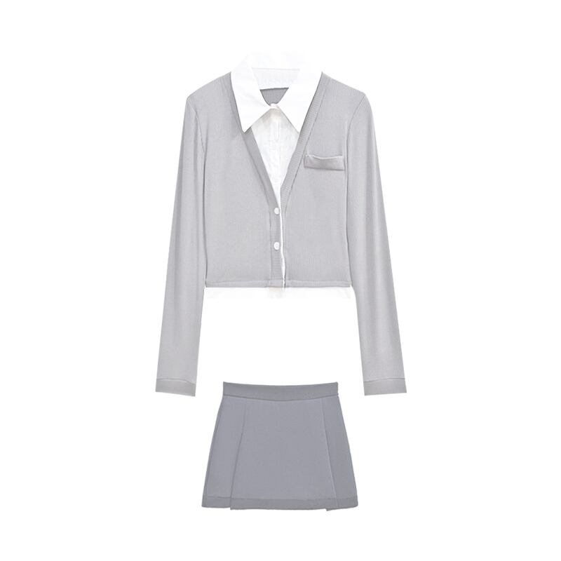 2023 インターネット有名人爆発スーツ春の新ファッション偽ツーピースニットトップハイウエストバッグヒップスカート婦人服 ハイウェスト スプリング 春物 nana53150728683 | modepoisson