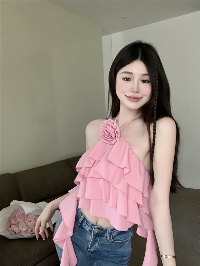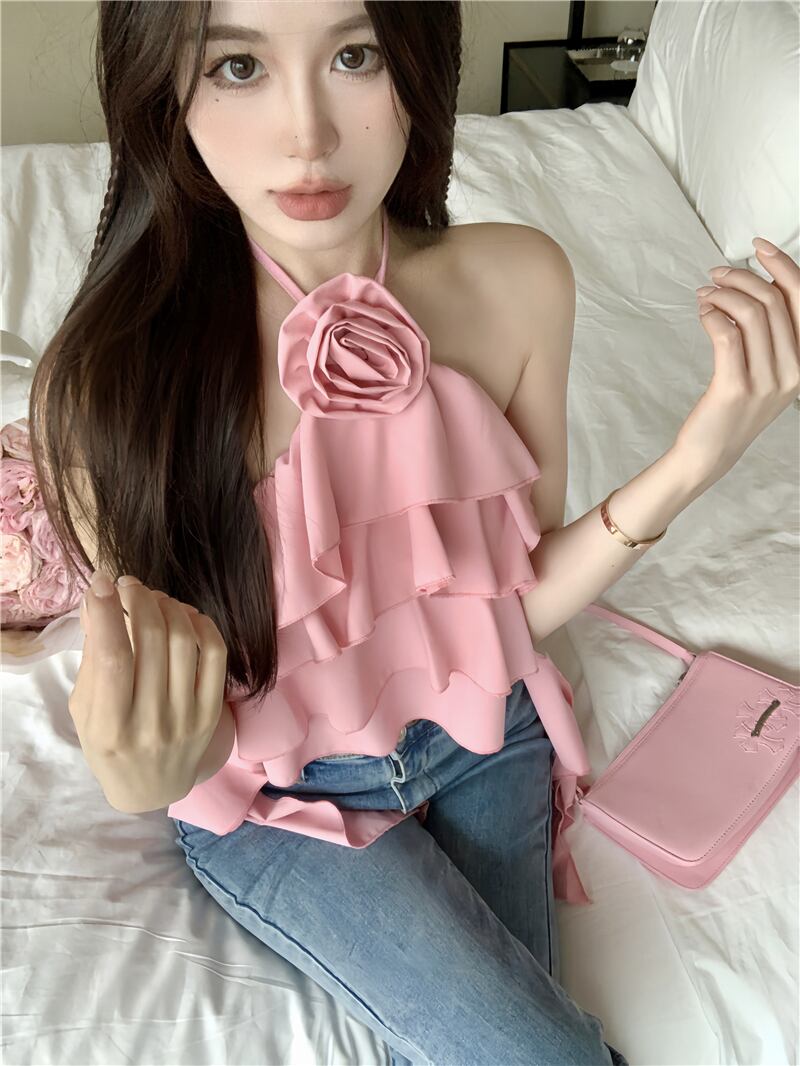 ピュアデザ 吊り首 キャミソール レディース アウター 夏 シック フリル フレンチ 甘辛スタイル 超妖精 インナートップ ラッフル 大人ガーリー スウィート キュート カジュアル サマー 夏物 nana54327876781 | modepoisson