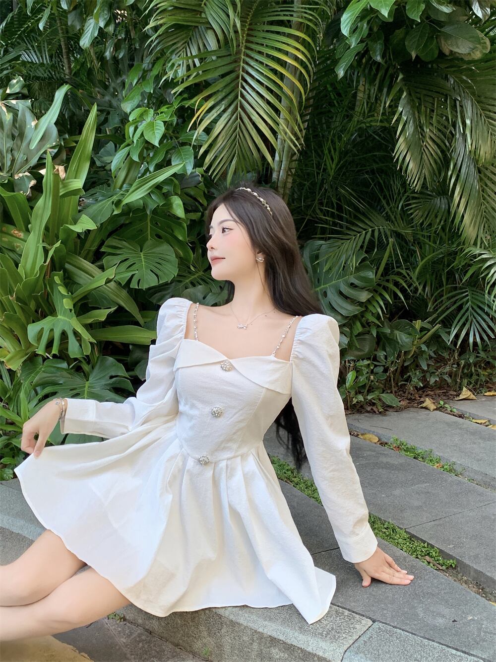 フレンチハイエンド気質レディース純粋な欲望スクエアカラーパフスリーブスカート春ウエストスリムふわふわドレス女性 スプリング 春物 ピュア スクウェア nana32330143150 | modepoisson