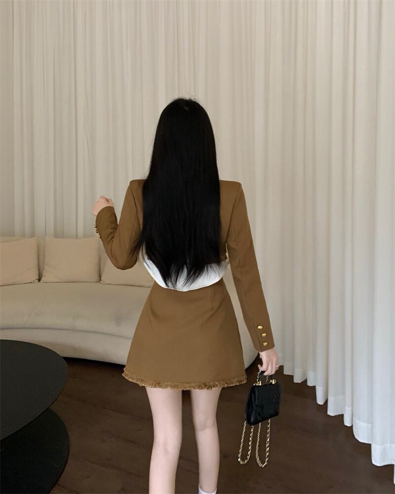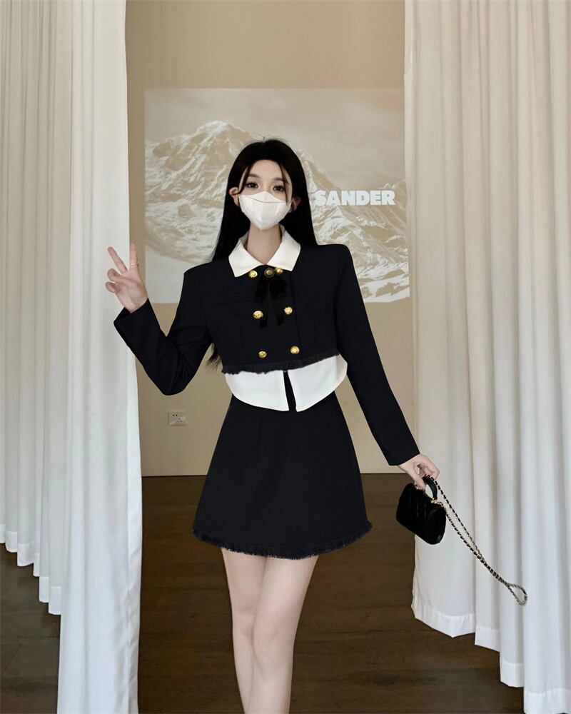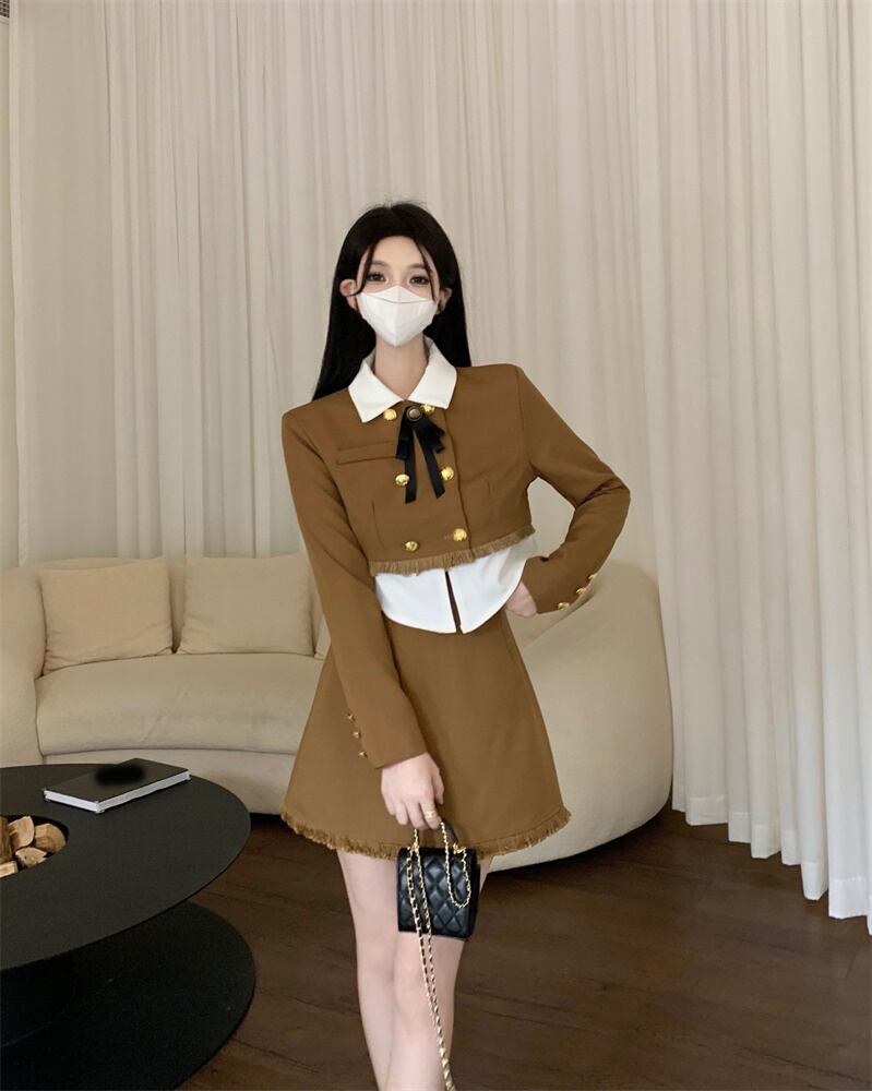フレンチスタイルの娘のスーツのスカートの春の新しいファッションの女性の気質のジャケットハイウエストの薄いスカートの女性のツーピースセット ハイウェスト スプリング 春物 nana83445283081 | modepoisson
