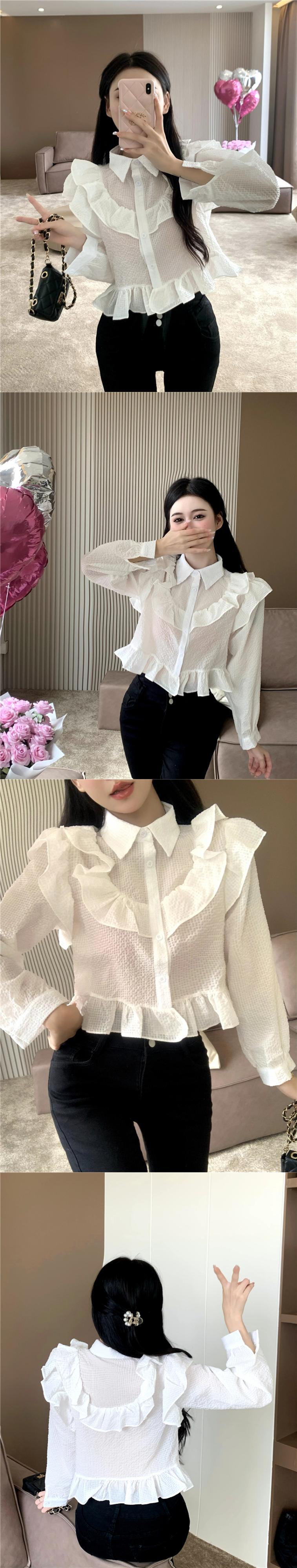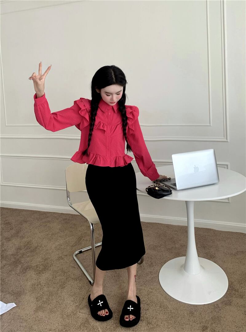 ローズレッドの婦人服2023春夏新作フレンチスタイルフリルショートシャツレディースデザインセンスニッチ気質トップ スプリング 春物 サマー 夏物 nana19537559437 | modepoisson