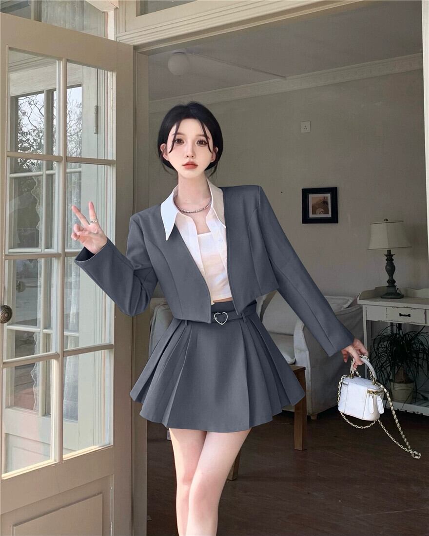 ネットレッドフライストリートウェアツーピーススーツレディース春の新作ファッションスーツショートコートハイウエストプリーツスカート ハイウェスト スプリング 春物 nana12441488283 | modepoisson