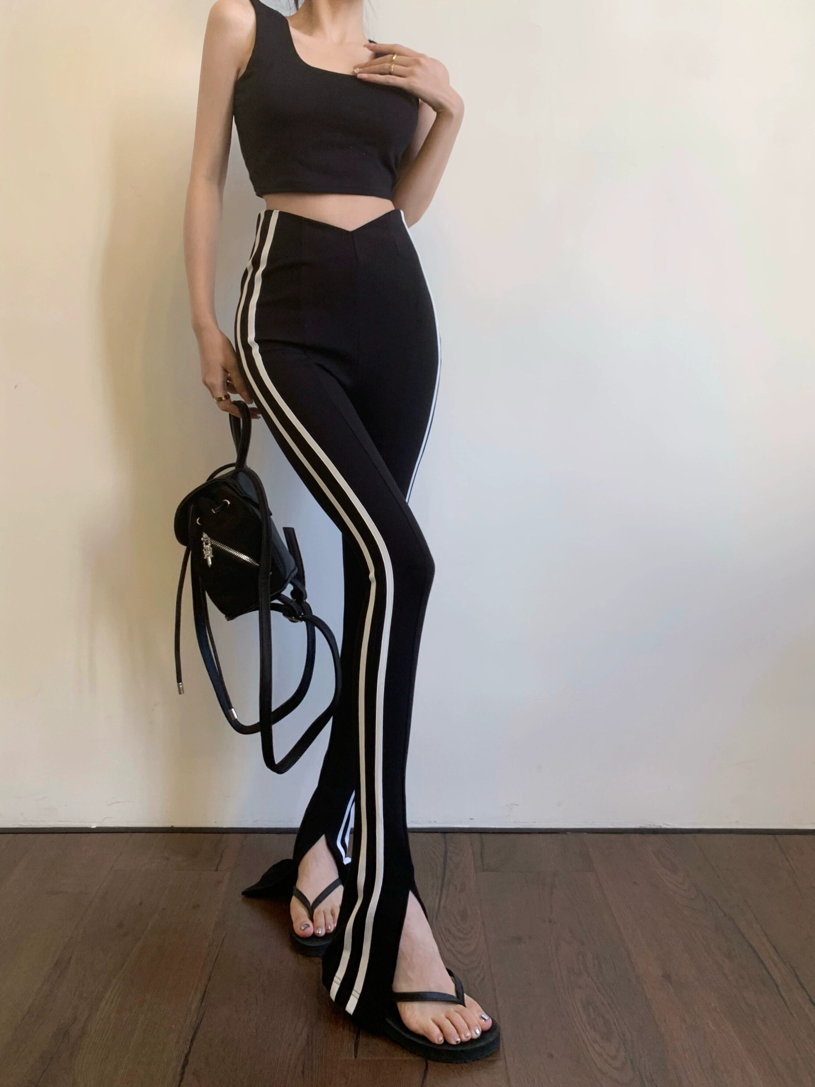 夏の新作ハイウエストルーズオールマッチワイドレッグタイトフィットスリムスリットパンツレディーススポーツカジュアルモップパンツ ハイウェスト サマー 夏物 nana27703164162 | modepoisson