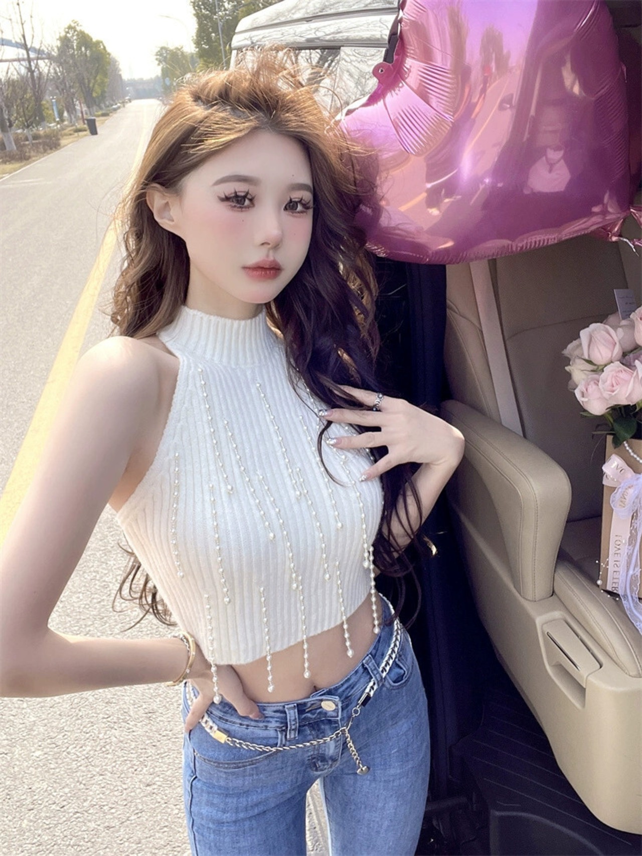 フレンチシックなユニークな甘くてスパイシーなセーター夏の新しいショートセクションスリムスリムストラップレスノースリーブベストトップ女性 大人ガーリー スウィート キュート カジュアル サマー 夏物 nana39329071285 | modepoisson