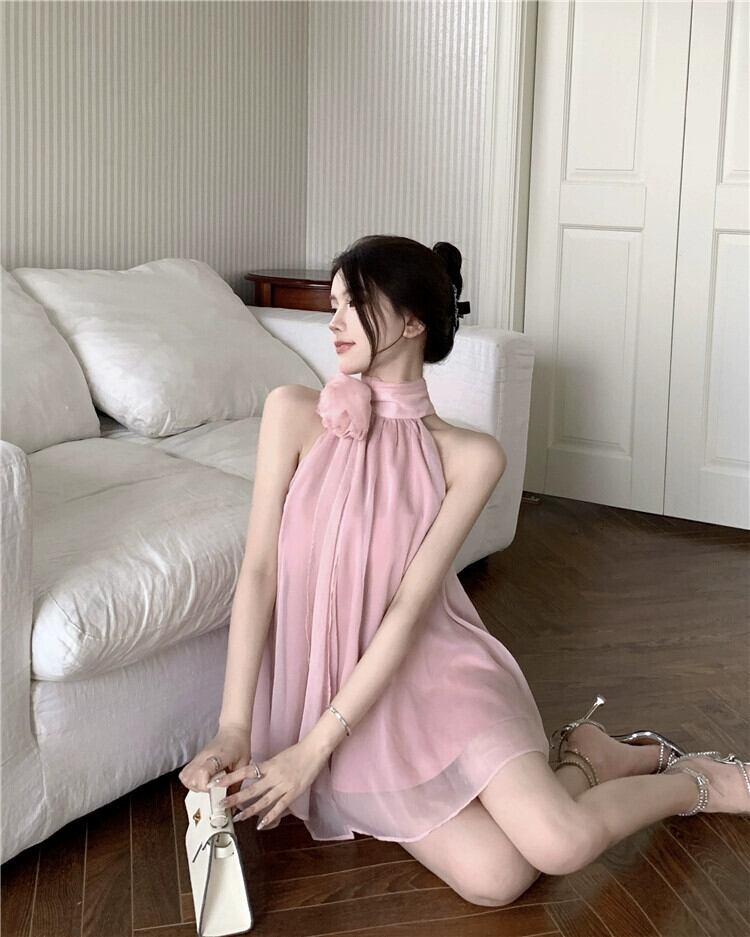 フレンチスタイルのセクシーなカットショルダースリーブスーパーフェアリーハンギングネックベルトストリーマー甘くて優しい風ティーブレイクシックなハイエンドトップ女性 大人ガーリー スウィート キュート カジュアル ハーネス nana5728841049 | modepoisson