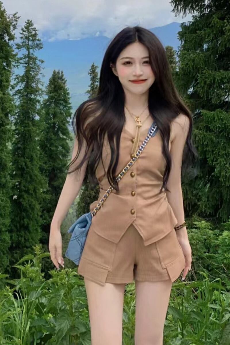 サマースーツの女性 2023 新しいスリムスリムチューブトップベストトップハイウエストワイドレッグカジュアルショーツ 2 点セット ハイウェスト 夏物 ブルマー ワイドパンツ nana43707281693 | modepoisson