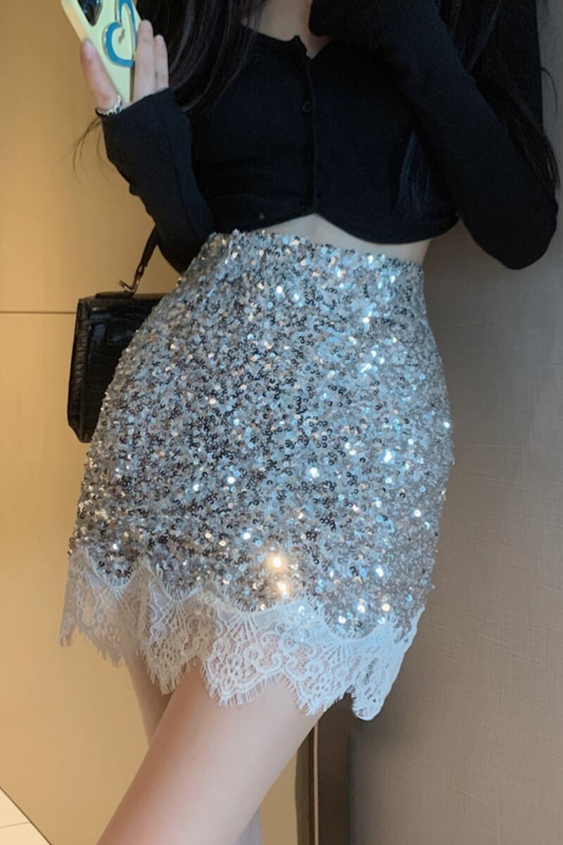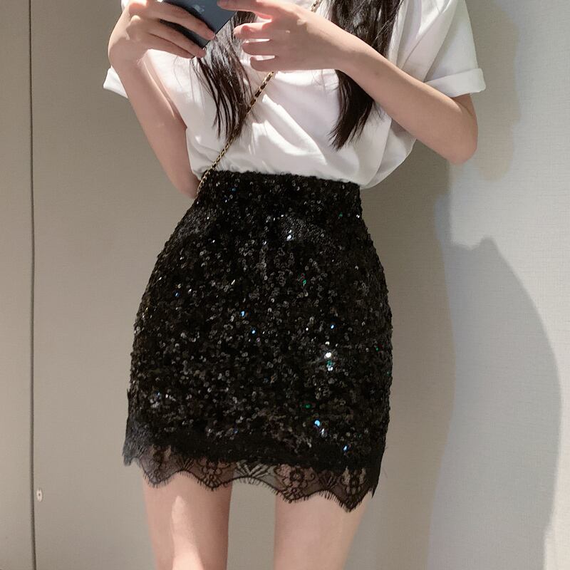 フランスの気質スパンコールハイウエストスカート女性 2023 夏の新スリム a ラインスカートバッグヒップスカート ハイウェスト サマー 夏物 Aライン nana20859651942 | modepoisson