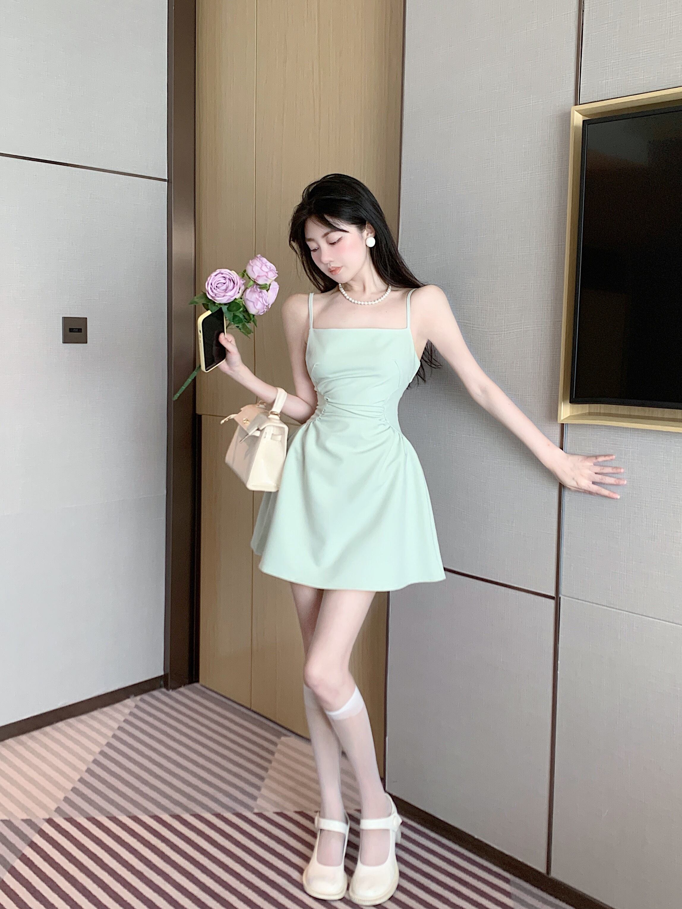 サスペンダーウエスト薄いドレス婦人服夏の新しい純粋な欲望セレブ気質スクエアカラーノースリーブaラインショートスカート サマー 夏物 ピュア スクウェア nana14267994181 | modepoisson