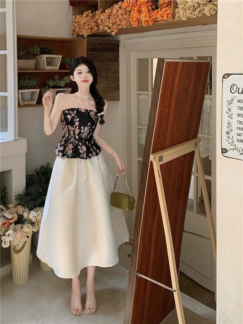 夏の新ツーピーススーツ女性のファッション甘くてスパイシーな純粋な欲望チューブトップベストトップハイウエスト A ラインふわふわスカート ハイウェスト 大人ガーリー スウィート キュート カジュアル サマー 夏物 Aライン ピュア nana59826052634 | modepoisson