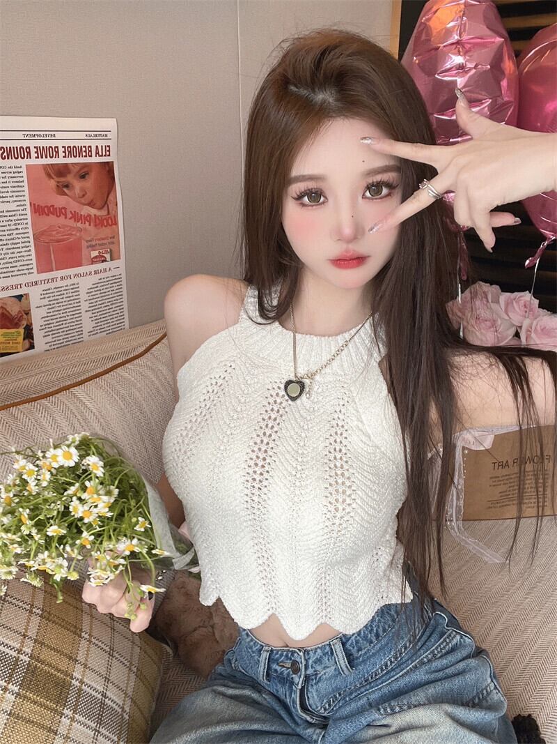 ホルターネック小さなスリング夏ショートノースリーブアイスシルクベストレディースフレンチシックシックなアウターウェアボトリングシャツインナートップ 半袖 ハーフスリーブ サマー 夏物 nana68027306486 | modepoisson