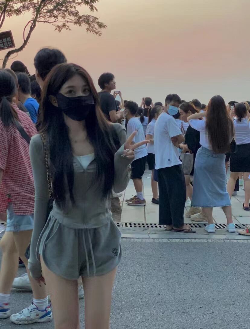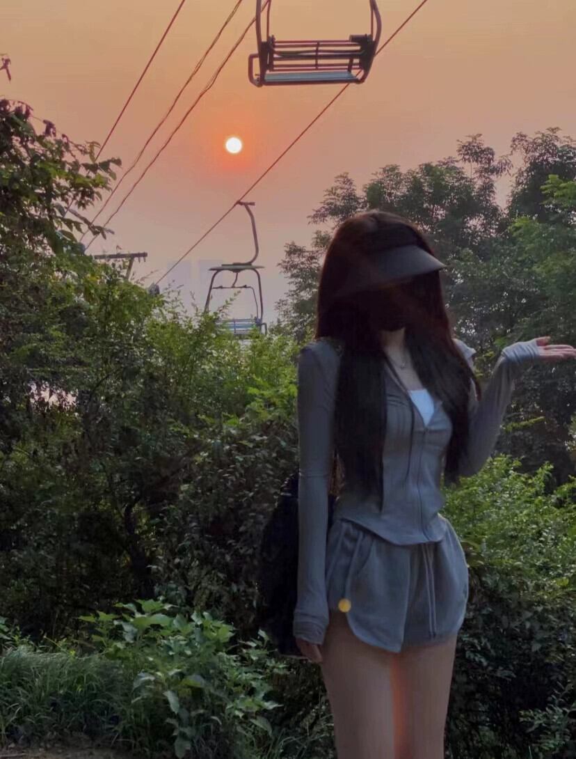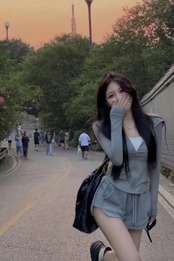 色:グレートップ,グレーのショートパンツ,ホワイトサスペンダー