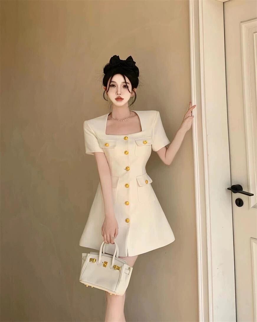 半袖ワンピース 2023 夏の新作フレンチスタイルニッチ気質シックな甘辛スリムスリム A ラインスカート 大人ガーリー スウィート キュート カジュアル サマー 夏物 Aライン nana86427361436 | modepoisson