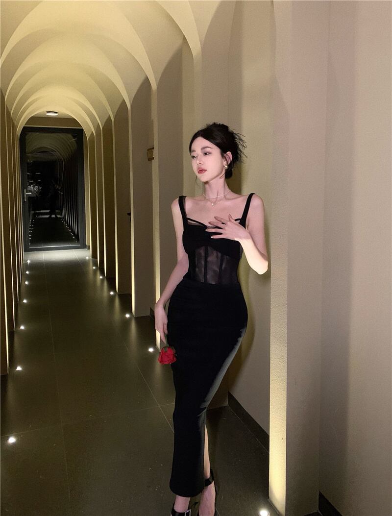 シックな甘くてスパイシーな黒のサスペンダードレスの女性の夏の新しいフレンチスタイルのニッチな気質自己修養痩身ヒップスカート ブラック 大人ガーリー スウィート キュート カジュアル サマー 夏物 nana49129396926 | modepoisson