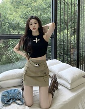 アメリカンレトロハイウエスト作業服スカート 2023 夏の新パッケージお尻が細くて小さい a ラインショートスカート女性 サマー 夏物 Aライン nana24185079216 | modepoisson
