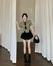 夏ネット赤スーツ女性 2023 新しい揚げストリート純粋な欲望半袖シャツハイウエストカジュアルワイドレッグパンツ 2 点セット ハイウェスト レッド サマー 夏物 ピュア nana20246185966 | modepoisson