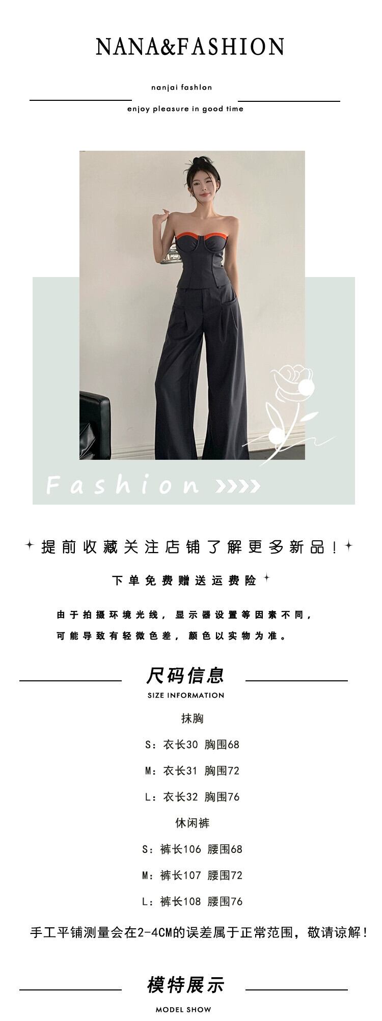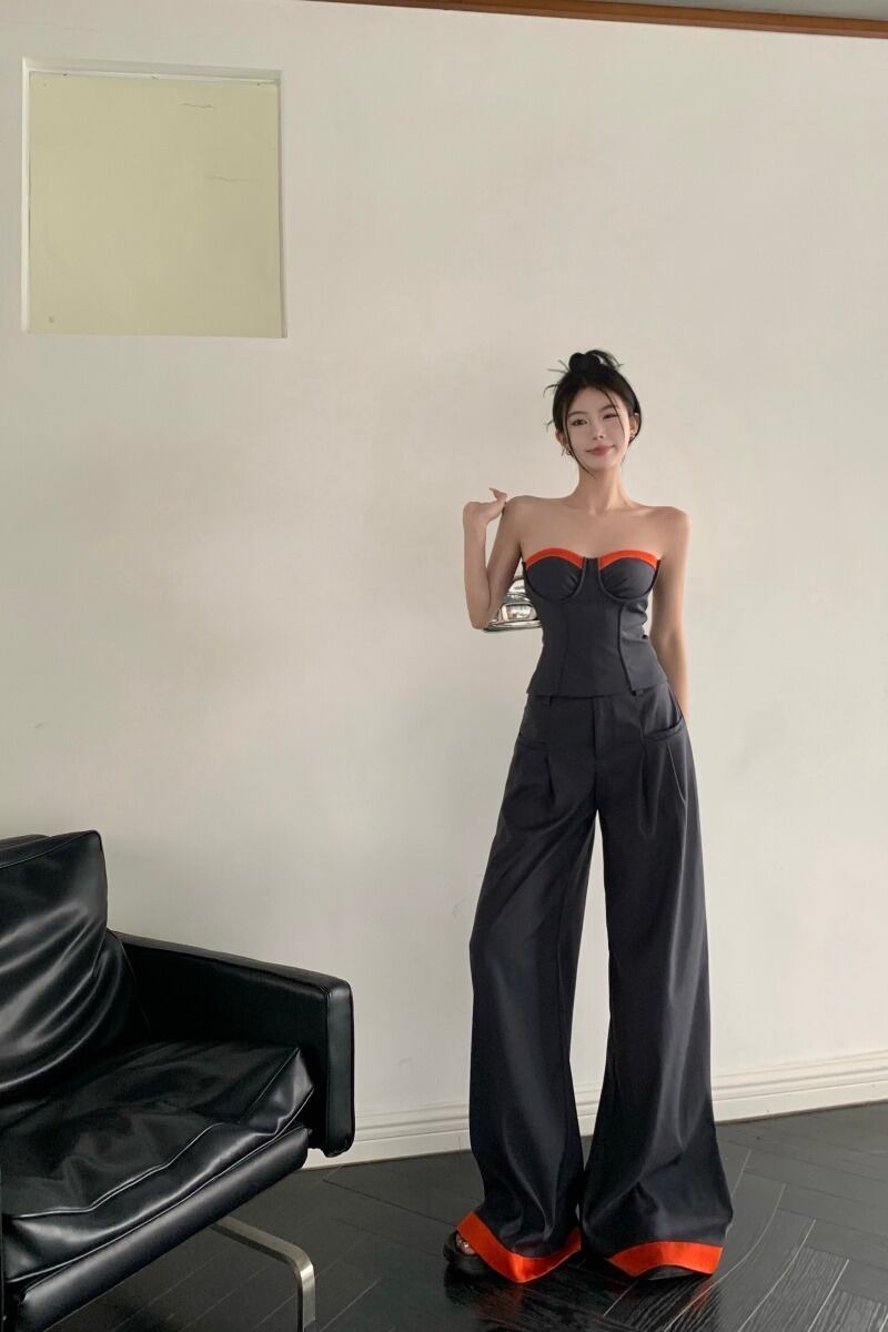 スーツ夏のデザインセンスチューブトップベストハイウエストルーズワイドレッグパンツカジュアルモップスーツパンツツーピーススーツ婦人服 ハイウェスト サマー 夏物 nana98029778357 | modepoisson