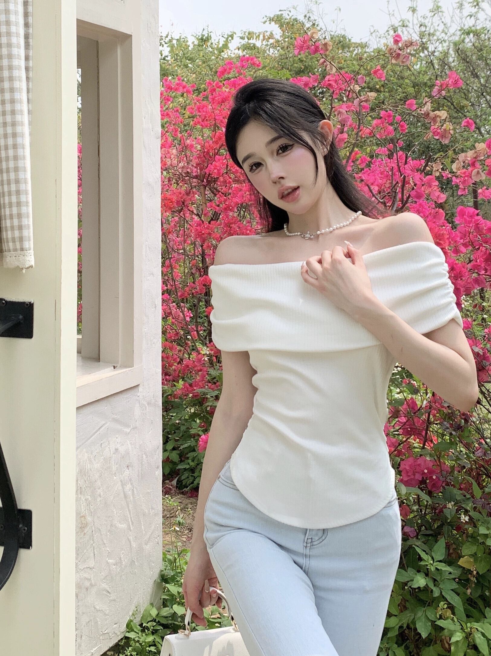 シックで美しいトップスワンショルダー夏デザインセンスニッチフランス気質自己修養薄い甘いスパイシーなTシャツ婦人服 大人ガーリー スウィート キュート カジュアル サマー 夏物 nana38927507752 | modepoisson