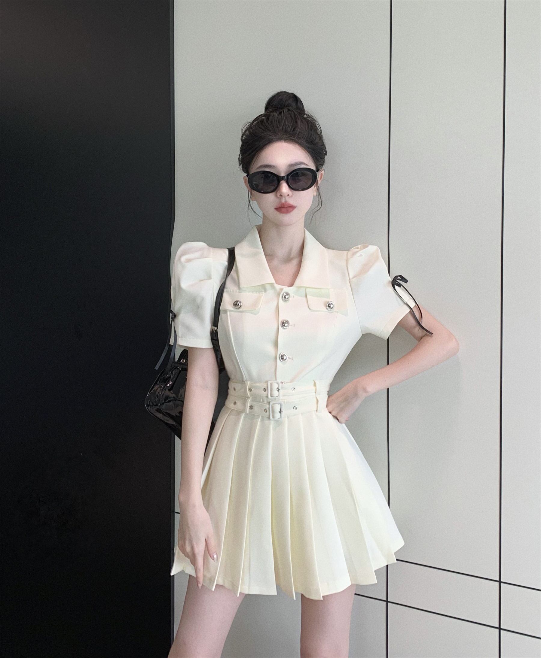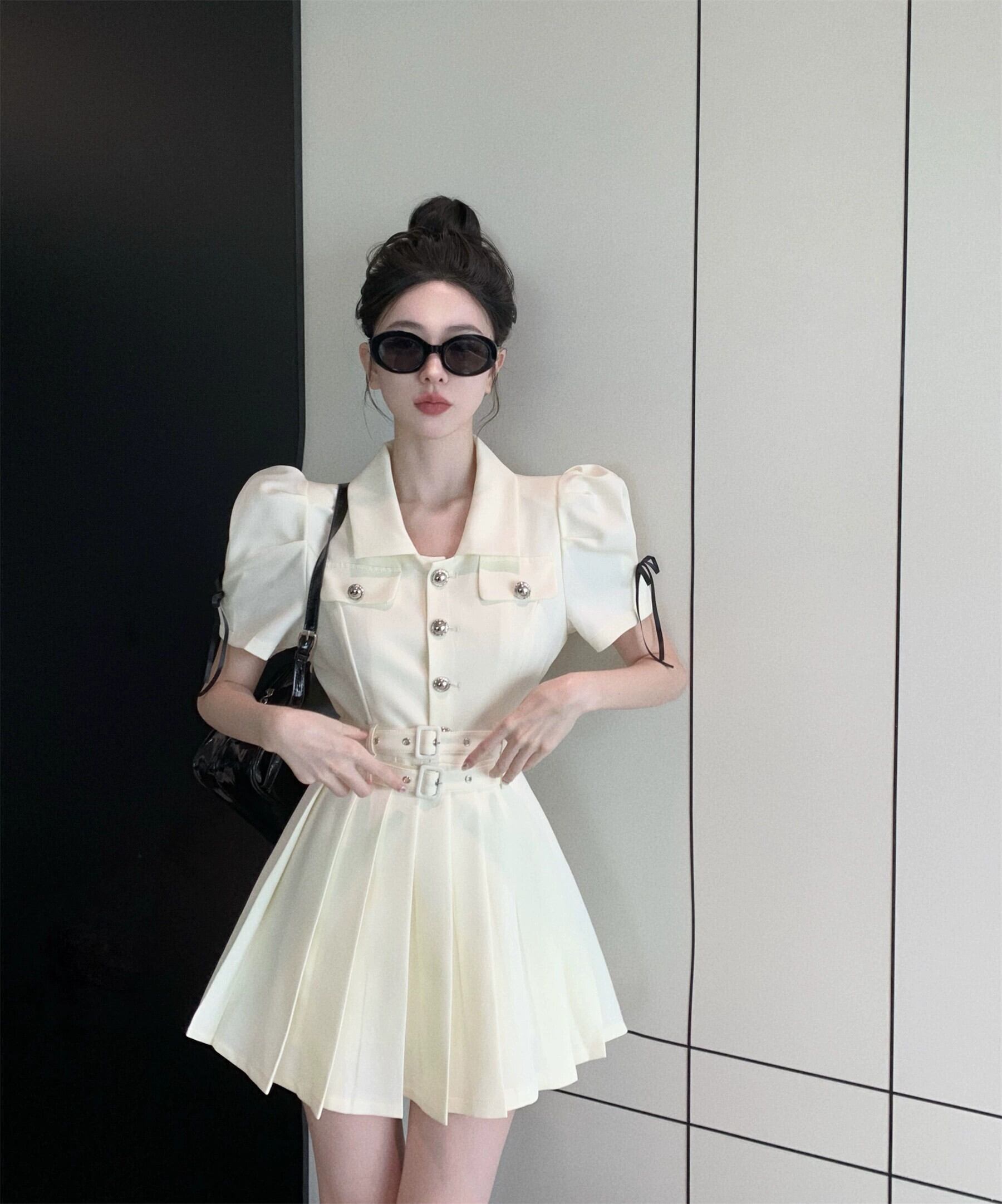 アメリカンレトロスカート女性の 2023 夏の新しいセクシーな甘いラペルベルトプリーツウエストドレス 大人ガーリー スウィート キュート カジュアル サマー 夏物 ハーネス nana61667476994 | modepoisson