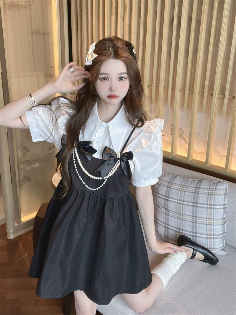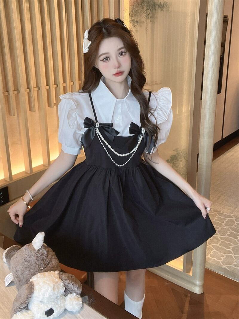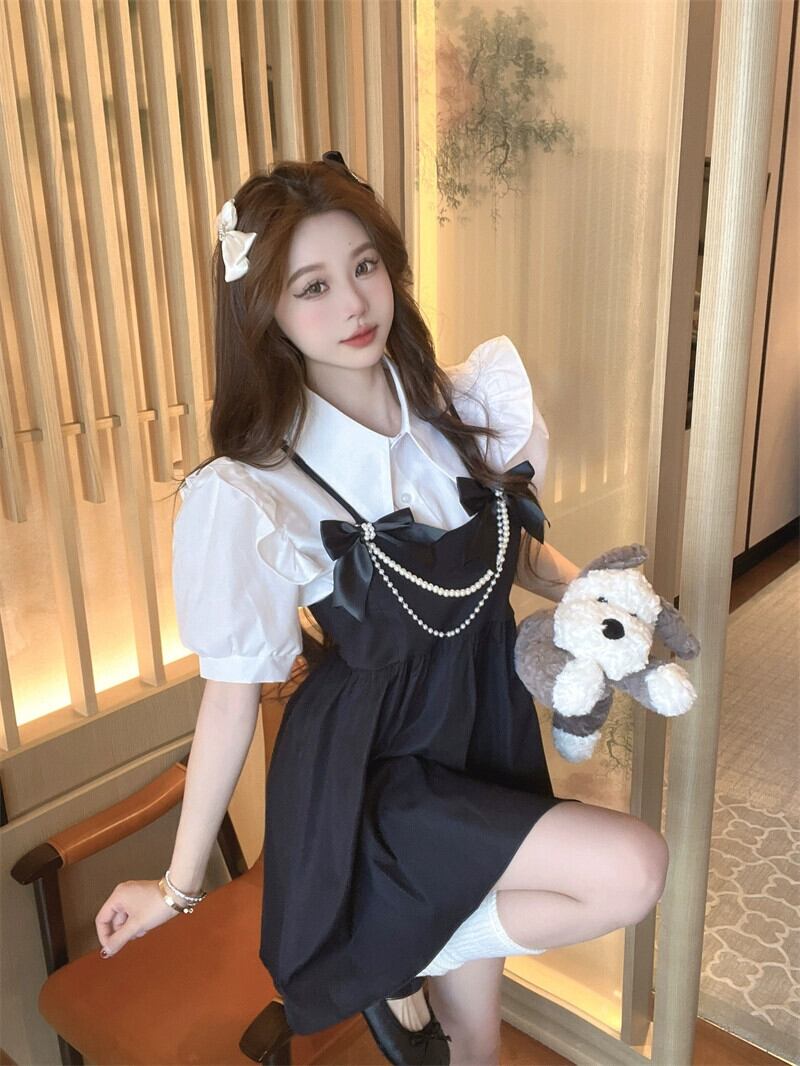 2023 夏新作ベビーかわいいスーツ女子大スタイルパフスリーブかわいいシャツキャミソールドレス 大人ガーリー スウィート キュート カジュアル サマー 夏物 nana32811490428 | modepoisson