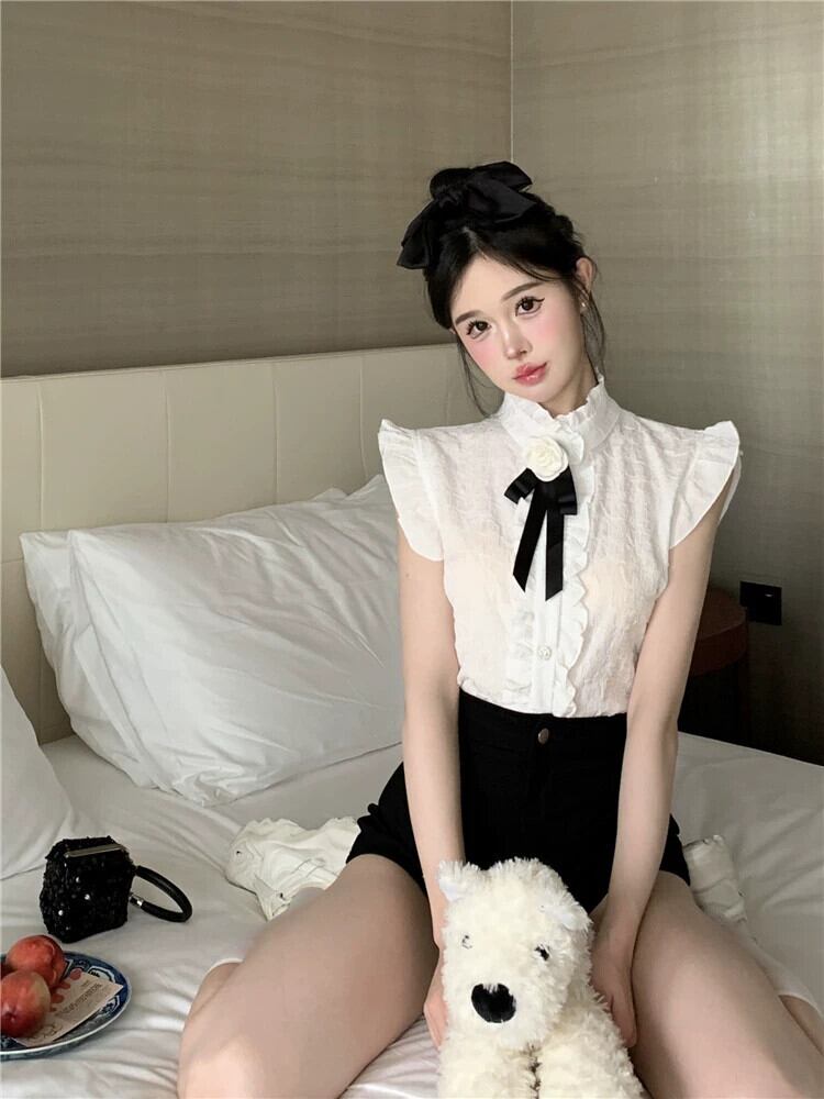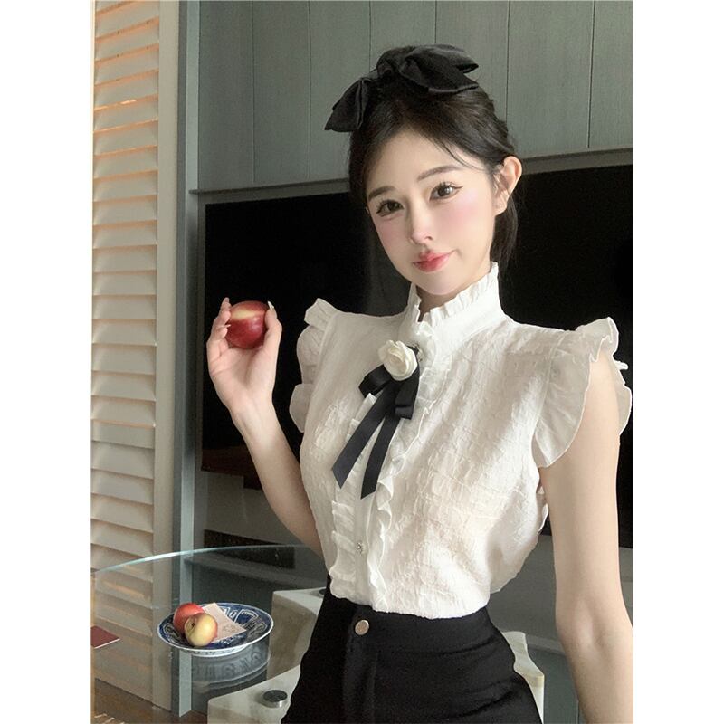 2023 夏の新スタイル宮殿スタイル甘いオールマッチデザインセンスニッチシックベストシャツノースリーブトップレディース レース 大人ガーリー スウィート キュート カジュアル サマー 夏物 nana93187997941 | modepoisson