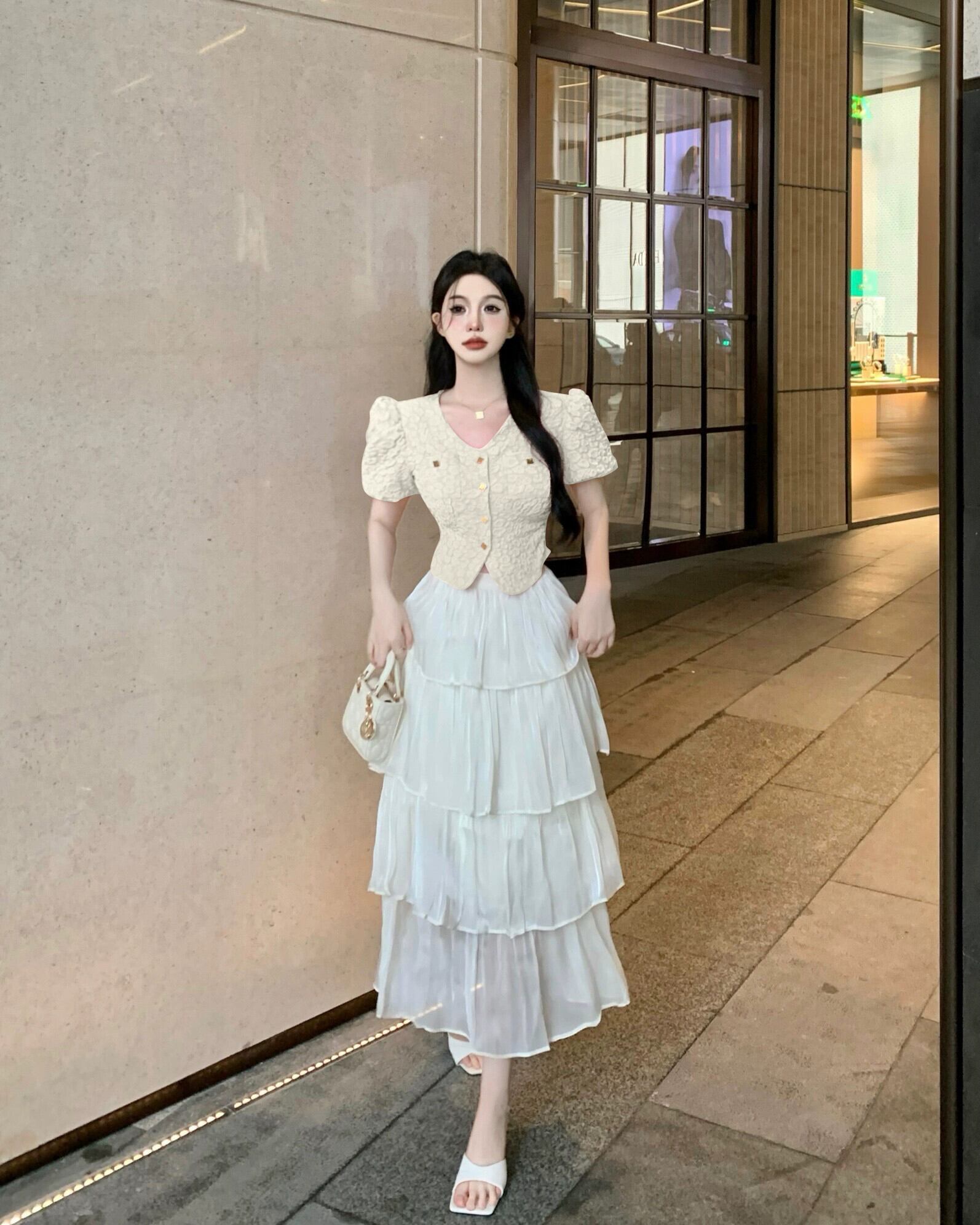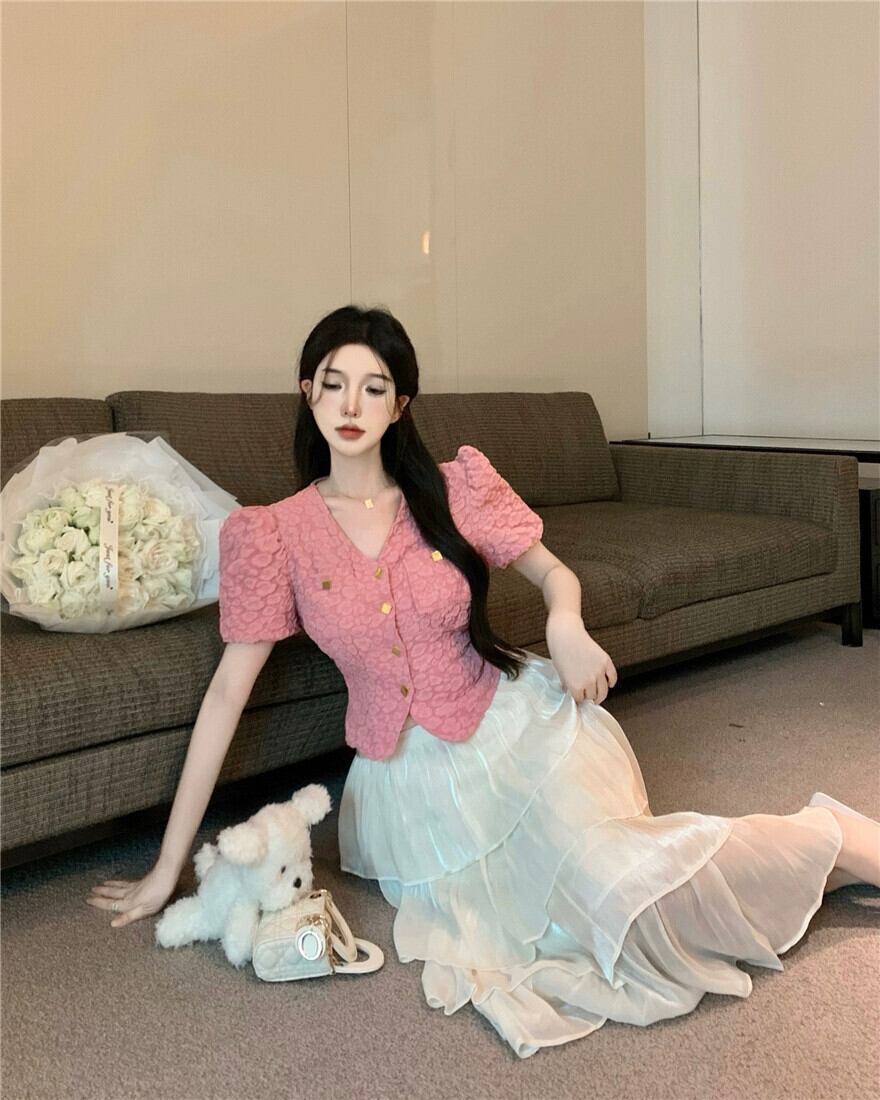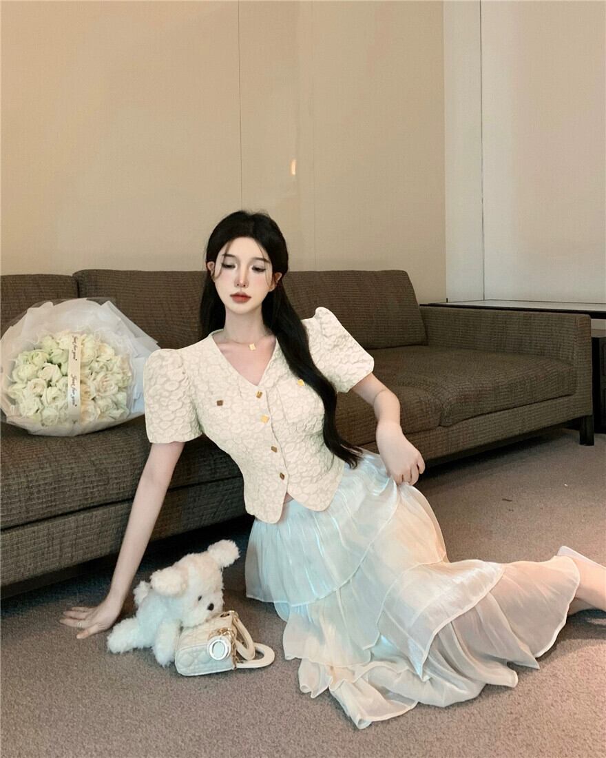 夏のツーピーススーツ女性 2023 新しいショートセクションスリムウエストカーディガントップハイウエストケーキスカート ハイウェスト サマー 夏物 nana46880868638 | modepoisson