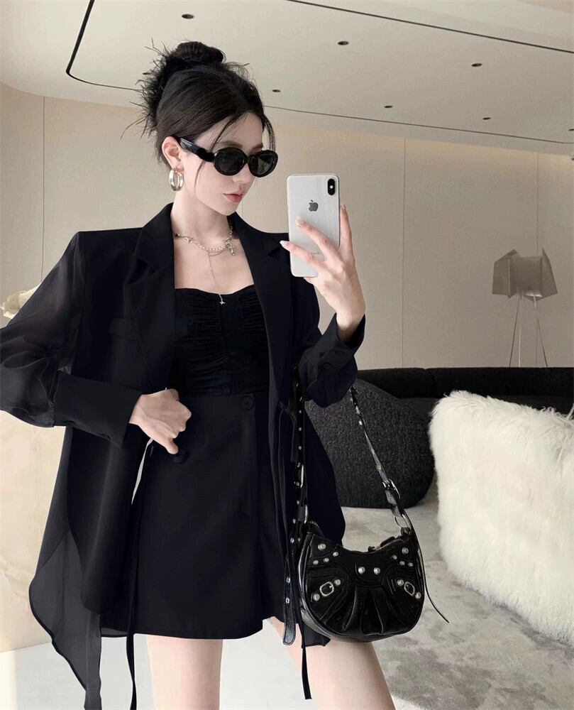 スーツレディース春の新作ファッション気質長袖スーツジャケットトップハイウエストルーズワイドレッグショーツ2点セット ハイウェスト ロング スプリング 春物 ブルマー nana19604430522 | modepoisson